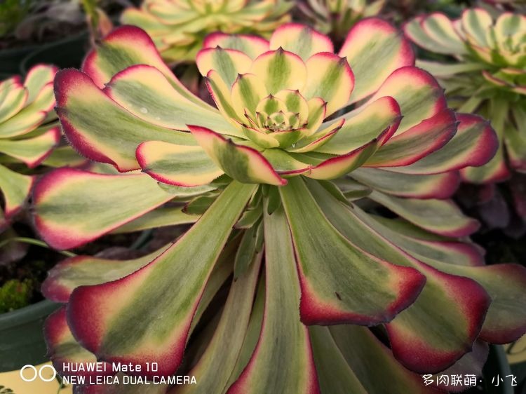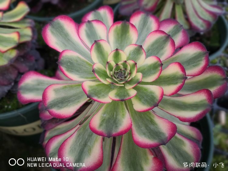 Pendant la période de croissance, les feuilles de Meiya sont vert clair au milieu, avec des taches de variegation jaune-blanc sur les deux côtés, le bord de la feuille est rose clair, et les trois couleurs sont régulièrement distribuées en forme de trait sur ses feuilles, et à mesure que l’intensité lumineuse augmente, les taches de variegation jaune-blanc se colorent progressivement avec le même rose que le bord de la feuille;
