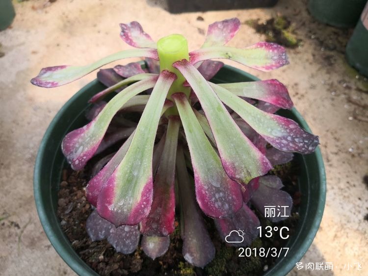 Cependant, ce à quoi je ne m’attendais pas, à peine deux ans plus tard, en 2017, j’ai soudainement retrouvé cette variegation rouge mais très différent du mardi gras. Fin novembre 2017, M. Wang l’a immédiatement reproduit de manière asexuée pour la première fois, ne laissant que la tête sans variegation sur l’image ci-dessus non coupée, et a fait des boutures des quatre têtes avec des variegations visibles pour les cultiver séparément.