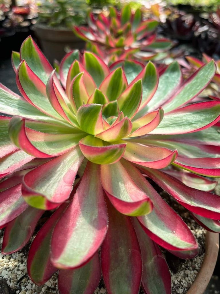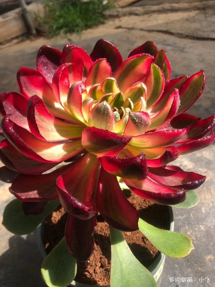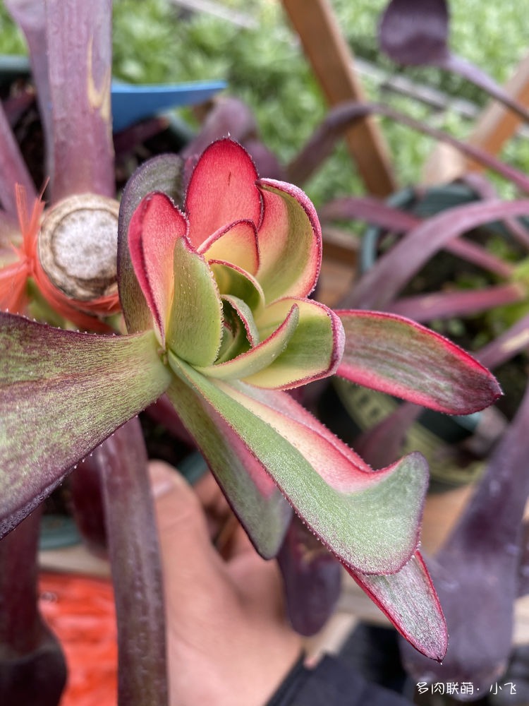 L’Aeonium ‘Voodoo Flame’ est une variété qui a été trouvée le 7 novembre 2020 par le collègue de Xiaofei, Dong Zhiwei, dans la pépinière de la serre horticole Ou Mud. Dong Zhiwei était en train de faire des greffes à côté d’un Aeonium ‘Voodoo’, et quand il a levé les yeux, il a trouvé un Aeonium ‘Voodoo’ avec plusieurs feuilles portant des traces de variegation.