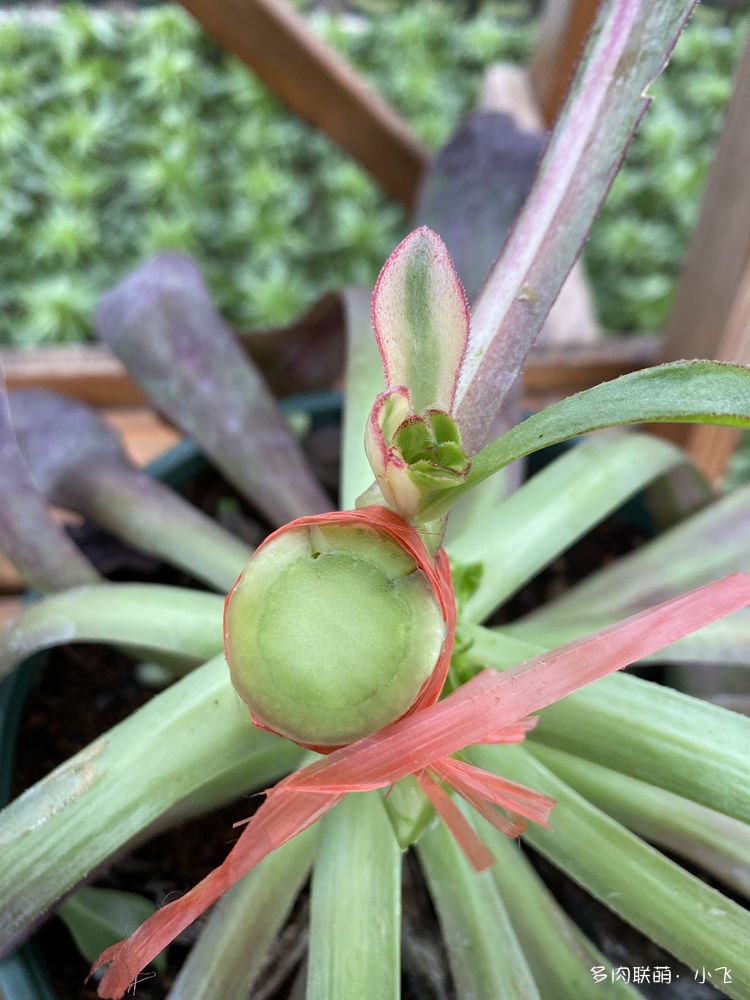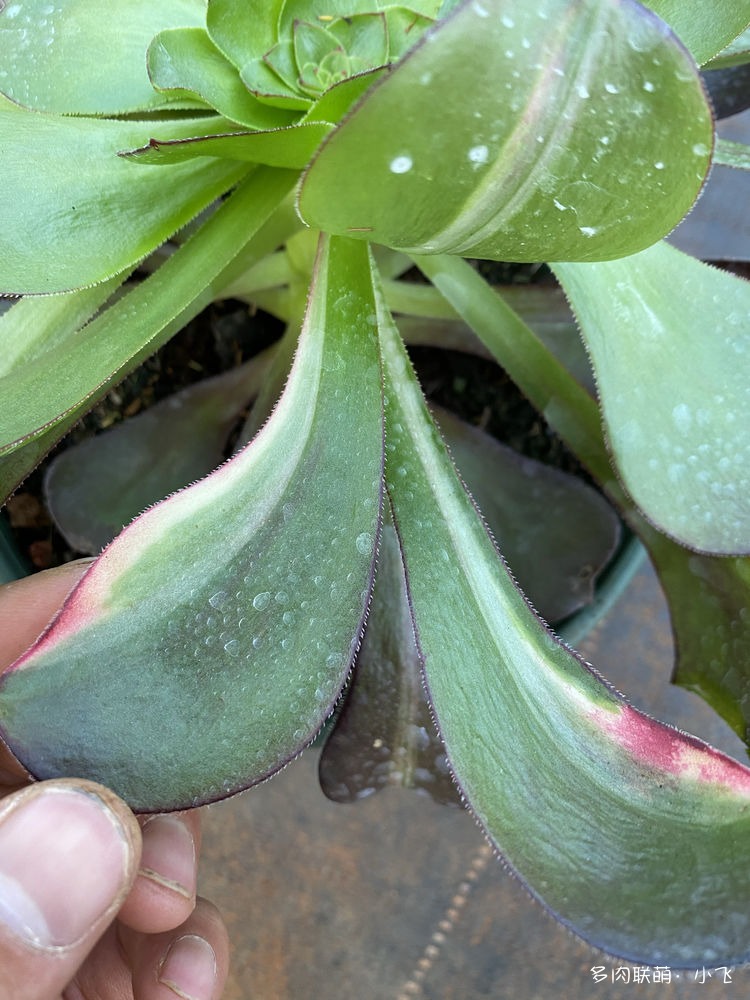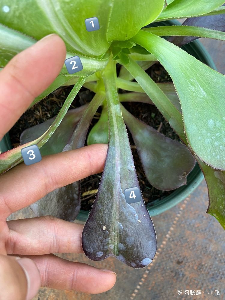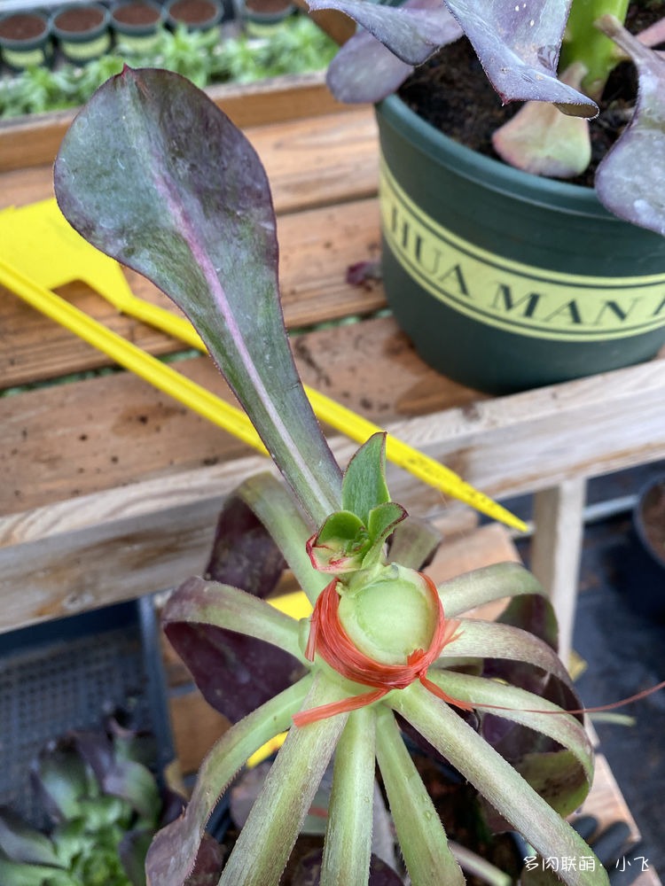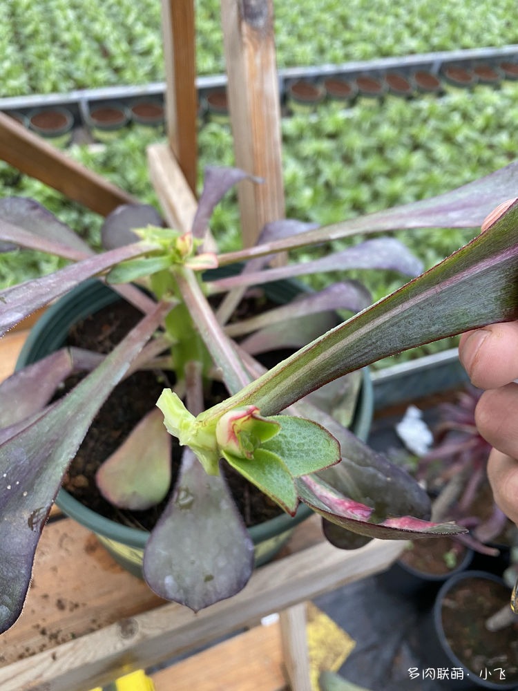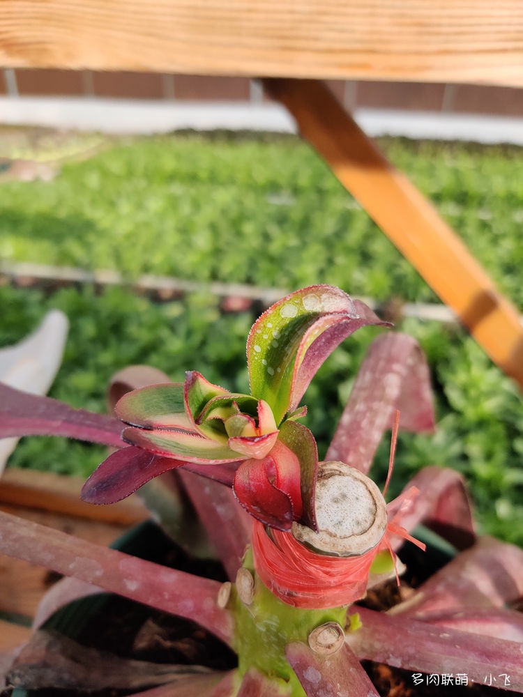 Bien qu’il y ait quatre feuilles avec de la variegation, quand Xiaofei l’a vu de ses propres yeux, il a été un peu déçu à ce moment-là, car la marque de la variegation des quatre feuilles était très étroite, et il pensait à tort que ces feuilles ne sortiraient pas nécessairement des bourgeons portant cette variegation. Heureusement, lorsque Xiaofei a ouvert la lame de son cutter pour vérifier, il a remarqué qu’il y avait déjà une petite feuille de bourgeon latéral avec une variegation parfaite !