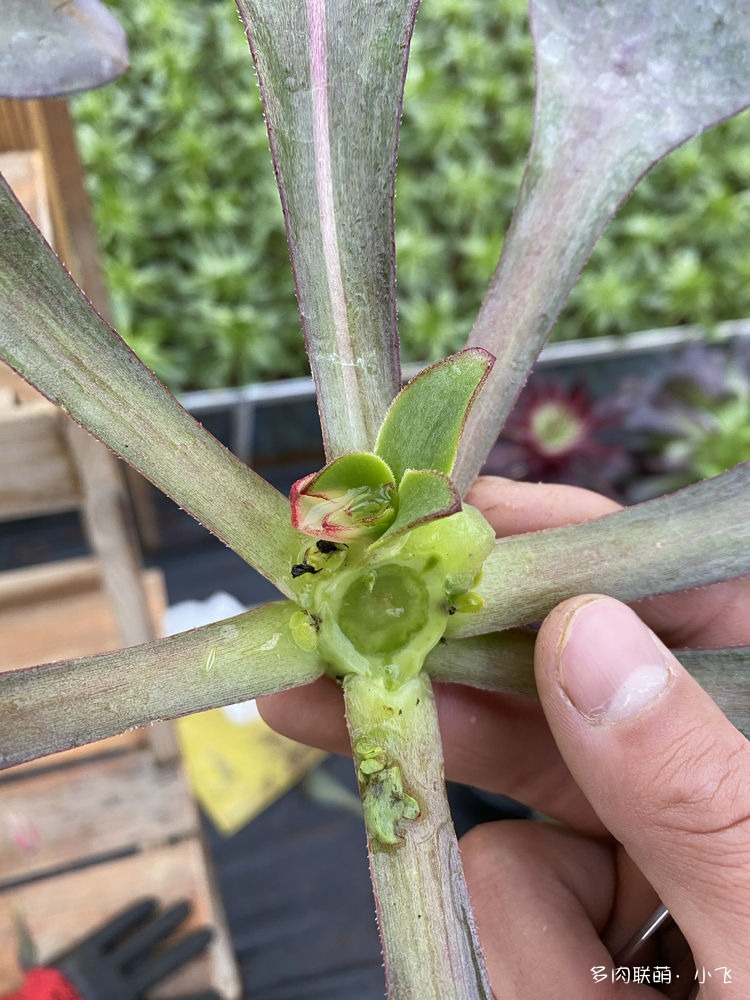Le 4 décembre, tôt ce matin-là, Xiaofei a constaté qu’il y avait de l’eau qui sortait de l’endroit où il a fait une incision, et il a immédiatement senti, avec ses années d’expérience, qu’il devait y avoir un début de pourriture ! Comme le montre la photo ci-dessus, il a eu tellement peur qu’il a rapidement pris un scalpel et a coupé la tige.