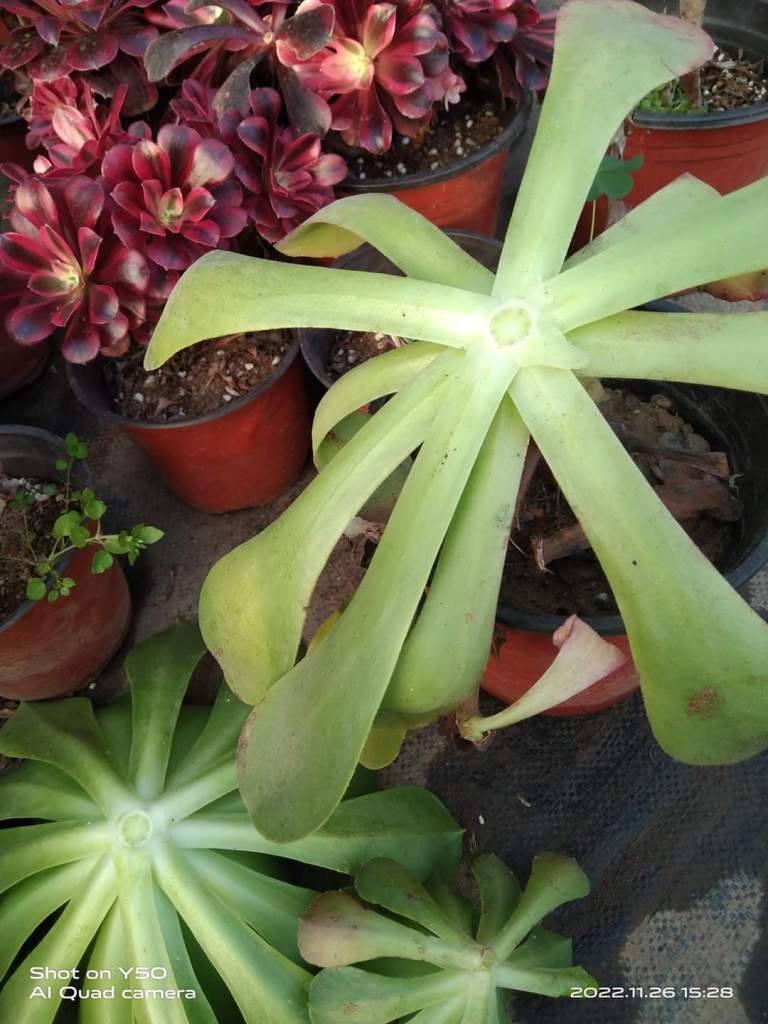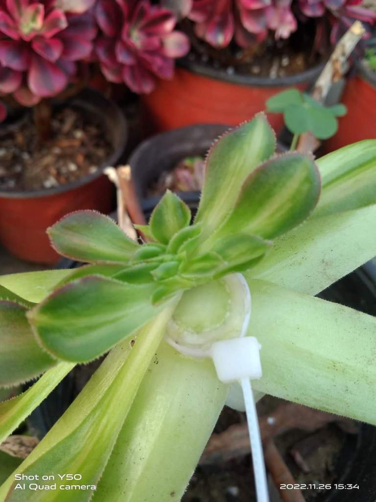 L’objectif d’un greffage d’Aeonium est simplement d’accélérer le développement de la bouture en utilisant la vigueur du porte-greffe.