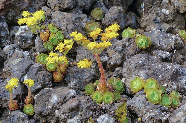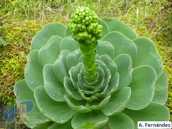 L’Aeonium diplocyclum (Greenovia diplocycla), contrairement à l’aeonium aureum ne rejette que très rarement. Sa rosette est d’un vert clair très subtil.