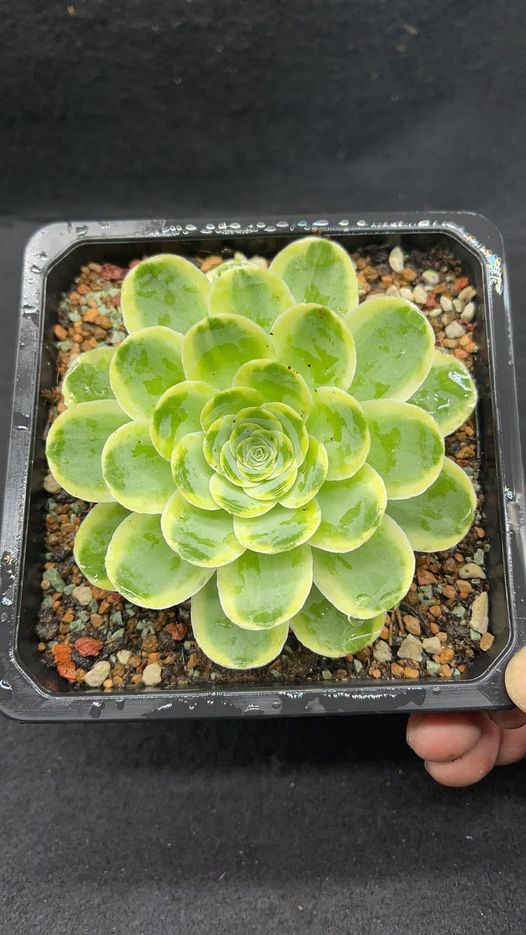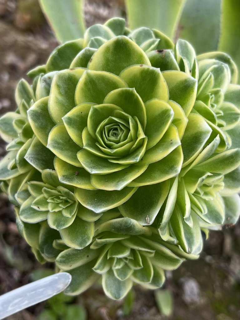 Il est fort peu probable que ce variegata provienne de diplocycla car comme vous l’avez lu plus haut, greenovia diplocycla ne rejette que très rarement ce qui n’est pas le cas pour ce variegata. Il serait plus probable qu’il soit issu de dodrantale.