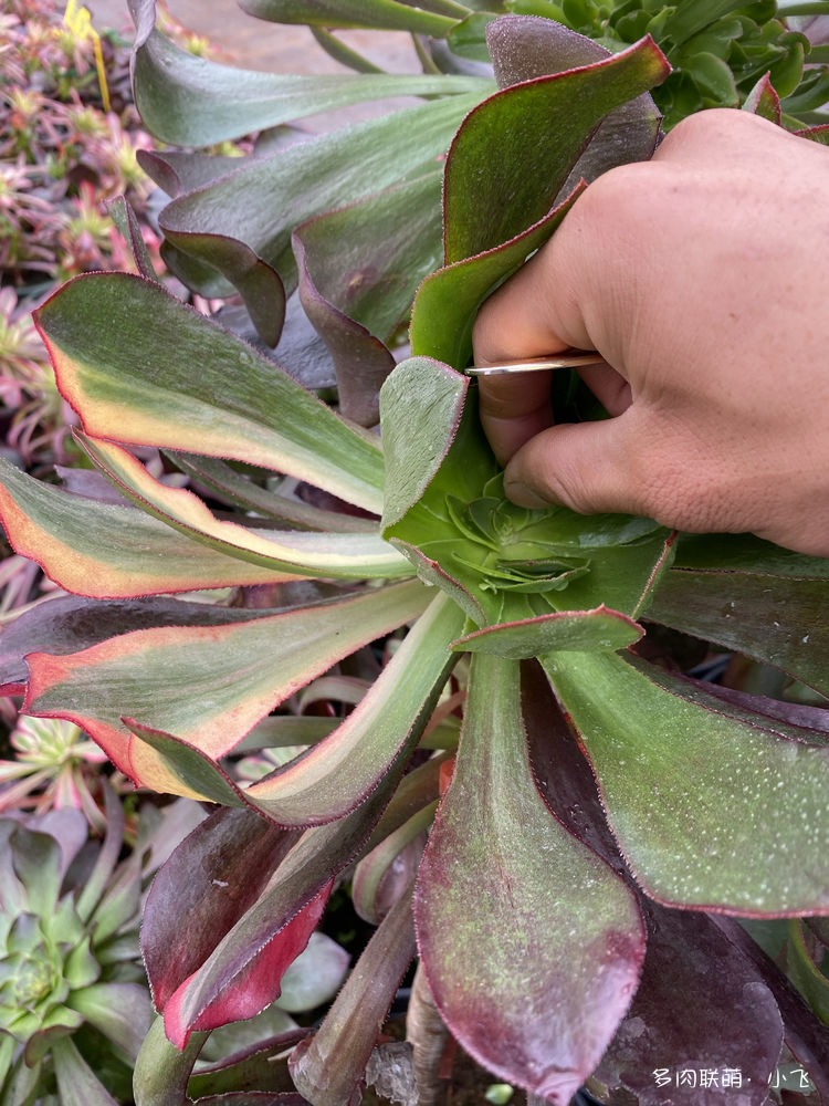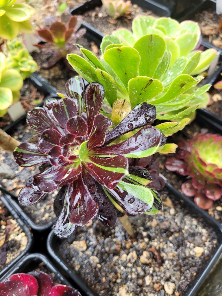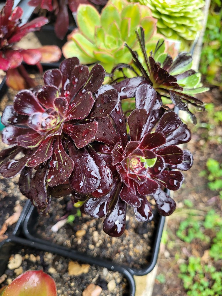 Un autre exemple de multiplication sur l’Aeonium ‘Dark Goddess’ :