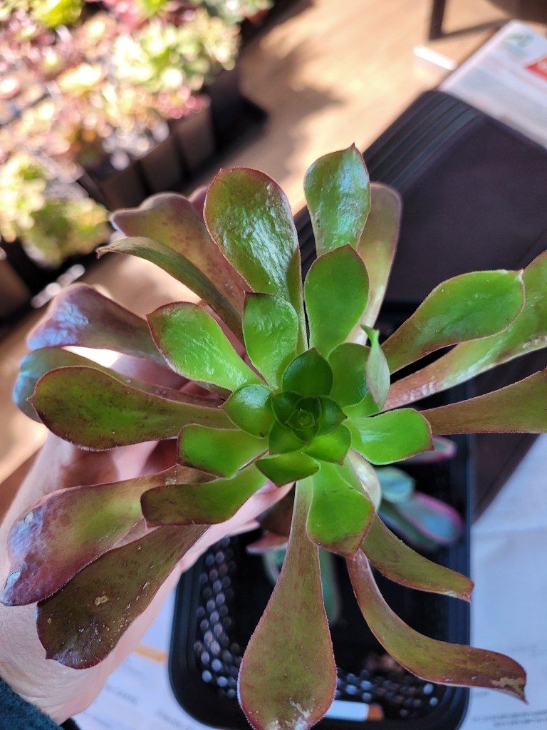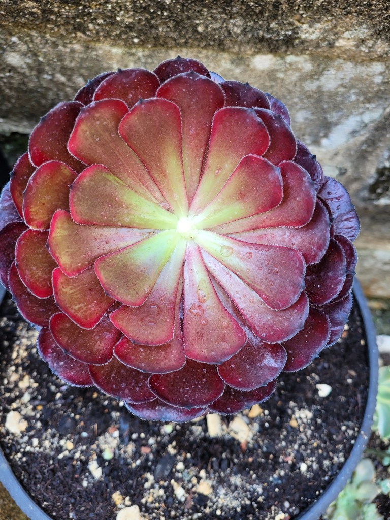 Au bout de quelques jours vous pouvez vaporiser le feuillage pour hydrater légèrement la rosette. Une dizaine de jours après l’implantation vous pouvez humidifier légèrement le substrat puis quand vous constatez des signes de croissance de la bouture, cela signifiera qu’il a raciné et vous pouvez dès lors l’arroser copieusement comme les autres Aeonium .
