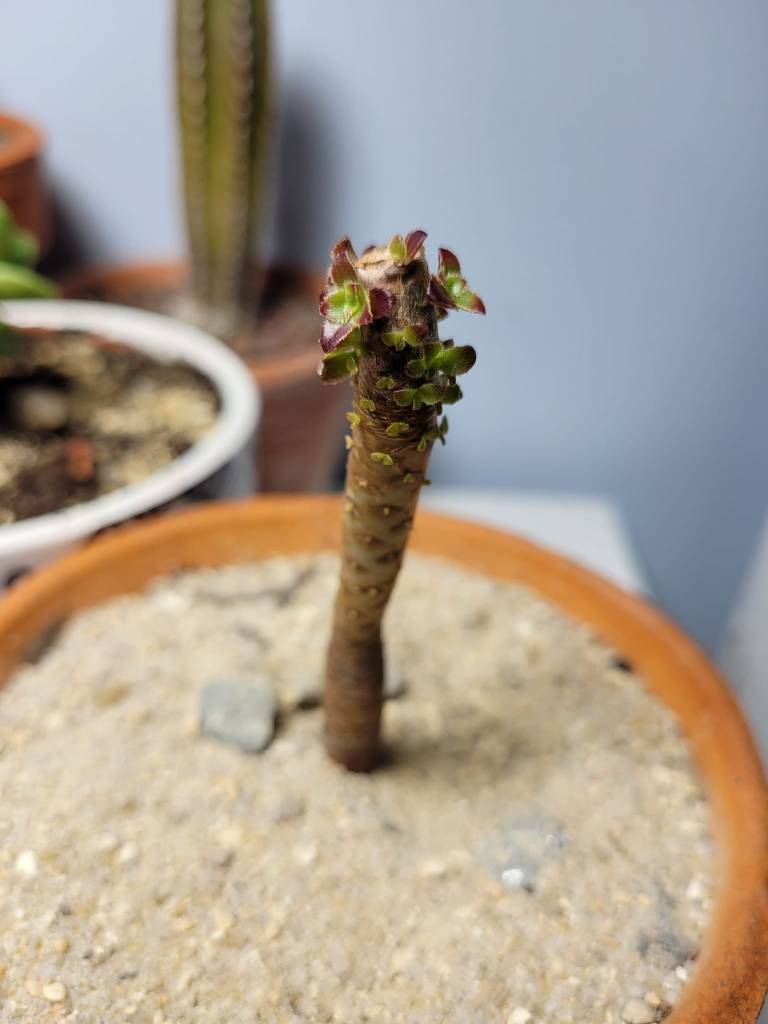 C’est la technique la plus simple. Vous coupez avec un sécateur un rejet en laissant 2-3 cm maximum de tiges seulement. Une tige trop longue mettra plus longtemps à faire des racines et sera moins vigoureuse. Ensuite vous laissez sécher à l’air libre quelques jours votre rejet pour que la plaie cicatrise et vous pouvez ensuite l’implanter dans un substrat adapté et sec voire légèrement humide à l’ombre ou mi-ombre. Il est possible de mettre de la cannelle par exemple pour aider à la cicatrisation et éviter les risques de pourriture.