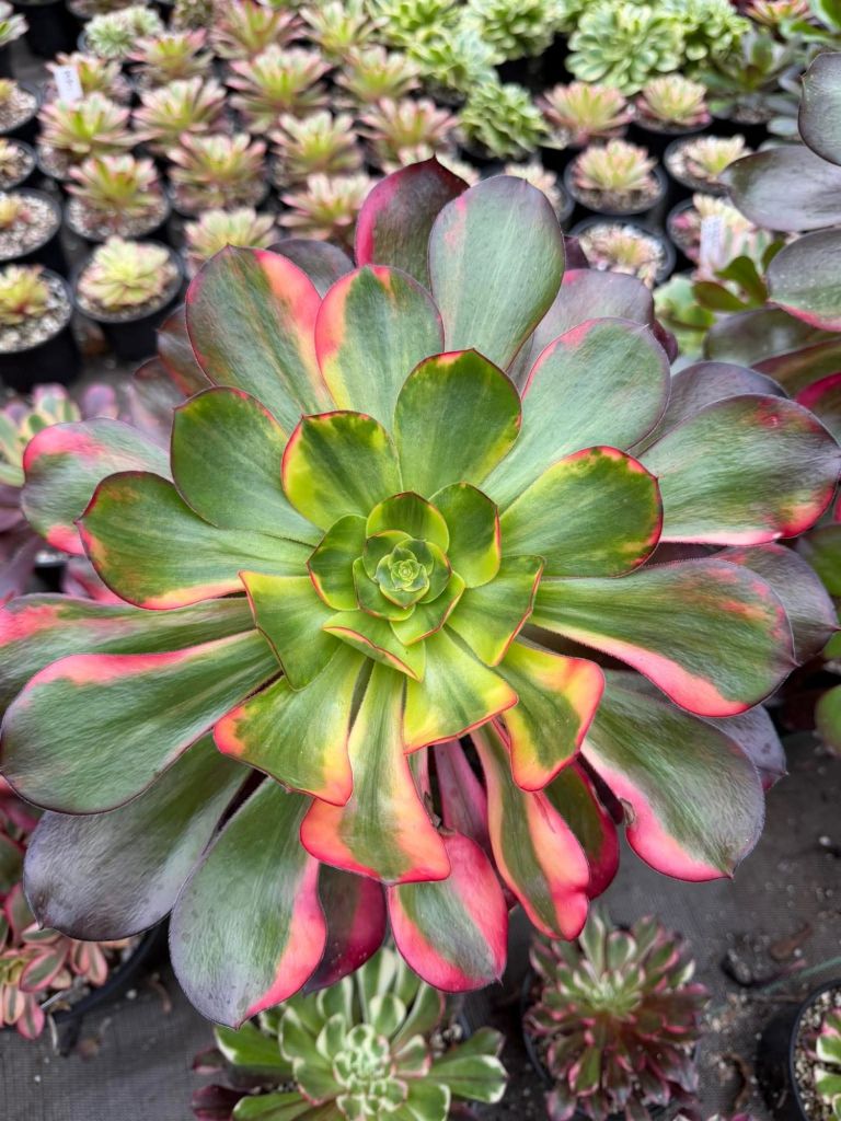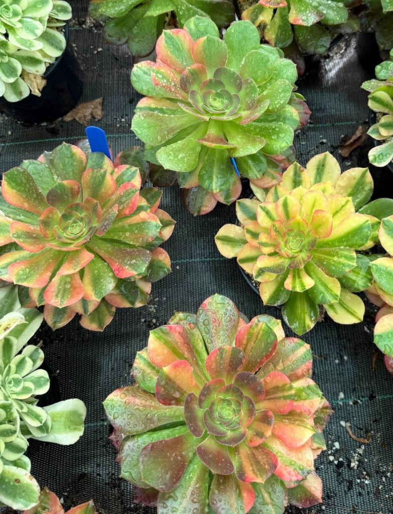 Voici quelques beaux exemples d’Aeonium « Rainbow ».