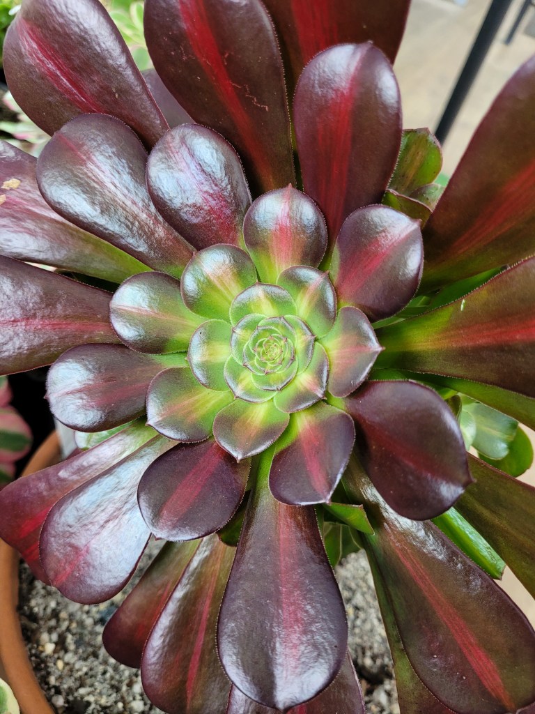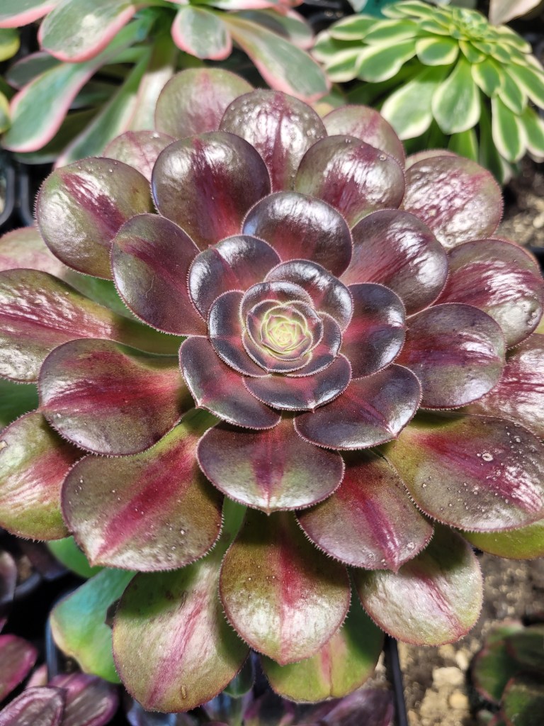 Les Aeonium de type ‘middle’ sont mieux pourvues en chlorophylle et sont de ce fait généralement plus résistants avec une pousse plus active que les Aeonium non ‘middle’ dont ils sont issus.