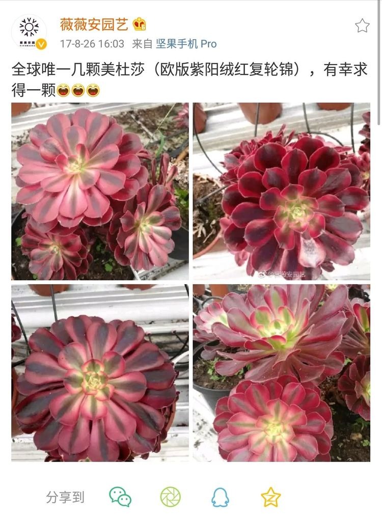 HISTOIRE DE SON ORIGINE : Je vais ici vous raconter l’histoire de l’origine de l’Aeonium ‘Medusa’, le plus célèbre et celui qui est, on peut le dire sans trop se tromper, à l’origine de l’engouement actuel pour les Aeonium .Tout a commencé par la découverte aux Pays-Bas en 2016 d’un nouvel Aeonium variegata par un horticulteur local. Celui-ci créé un jour un post sur Facebook pour le présenter. Wu Ning de Vivum Garden voit ce post et tombe immédiatement sous le charme de cet Aeonium et décide de tout faire pour l’acquérir. Après de nombreux échanges sur une longue période, Wu Ning arrive à persuader le propriétaire de ‘Medusa’ de lui vendre un exemplaire pour la somme « astronomique » pour l’époque de 1000 euros et en aout 2017 il décolle pour les Pays-Bas chercher ce plant. (voir photo ci-dessous).