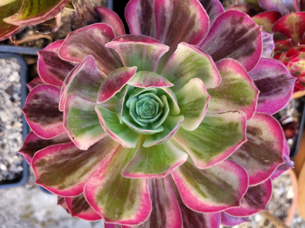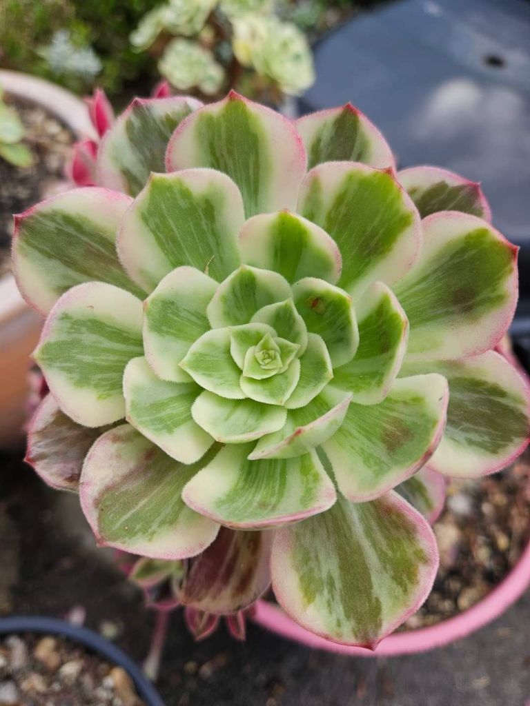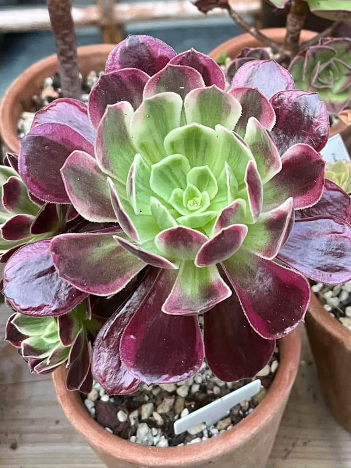 Il a une capacité moyenne à rejeter et sa pousse est dans la moyenne des variegata. Il n’est pas particulièrement fragile (sauf au gel comme tous les Aeonium ).