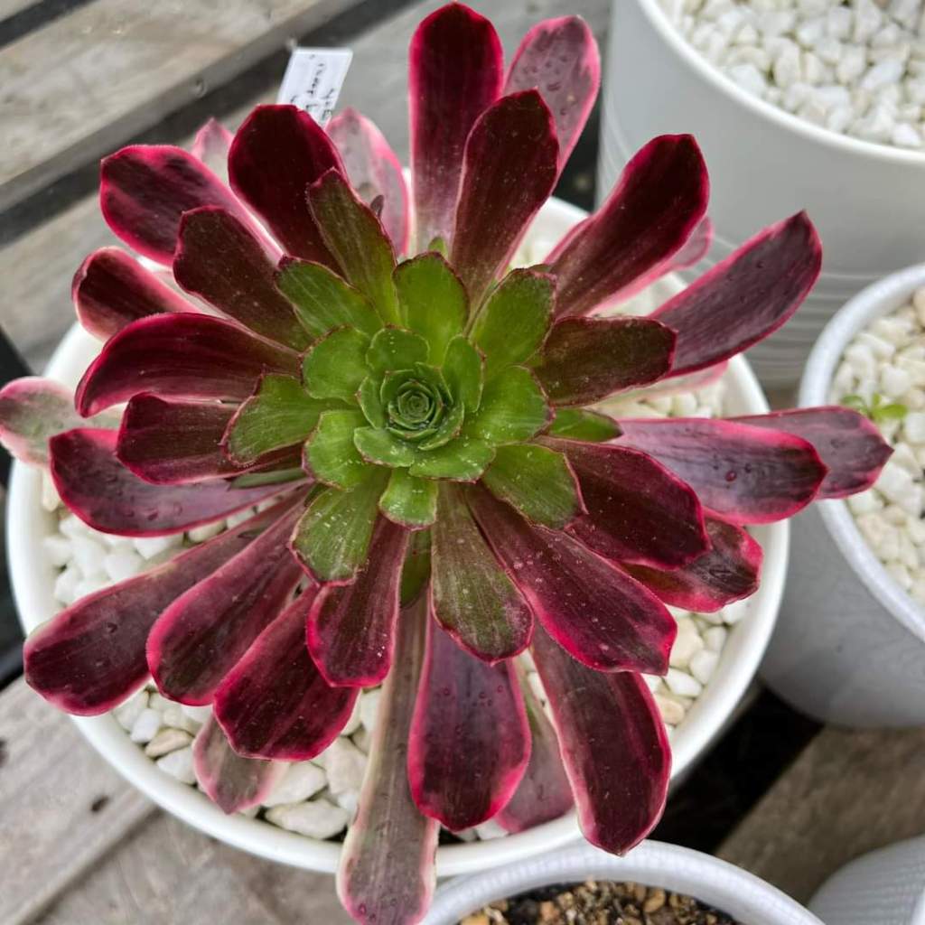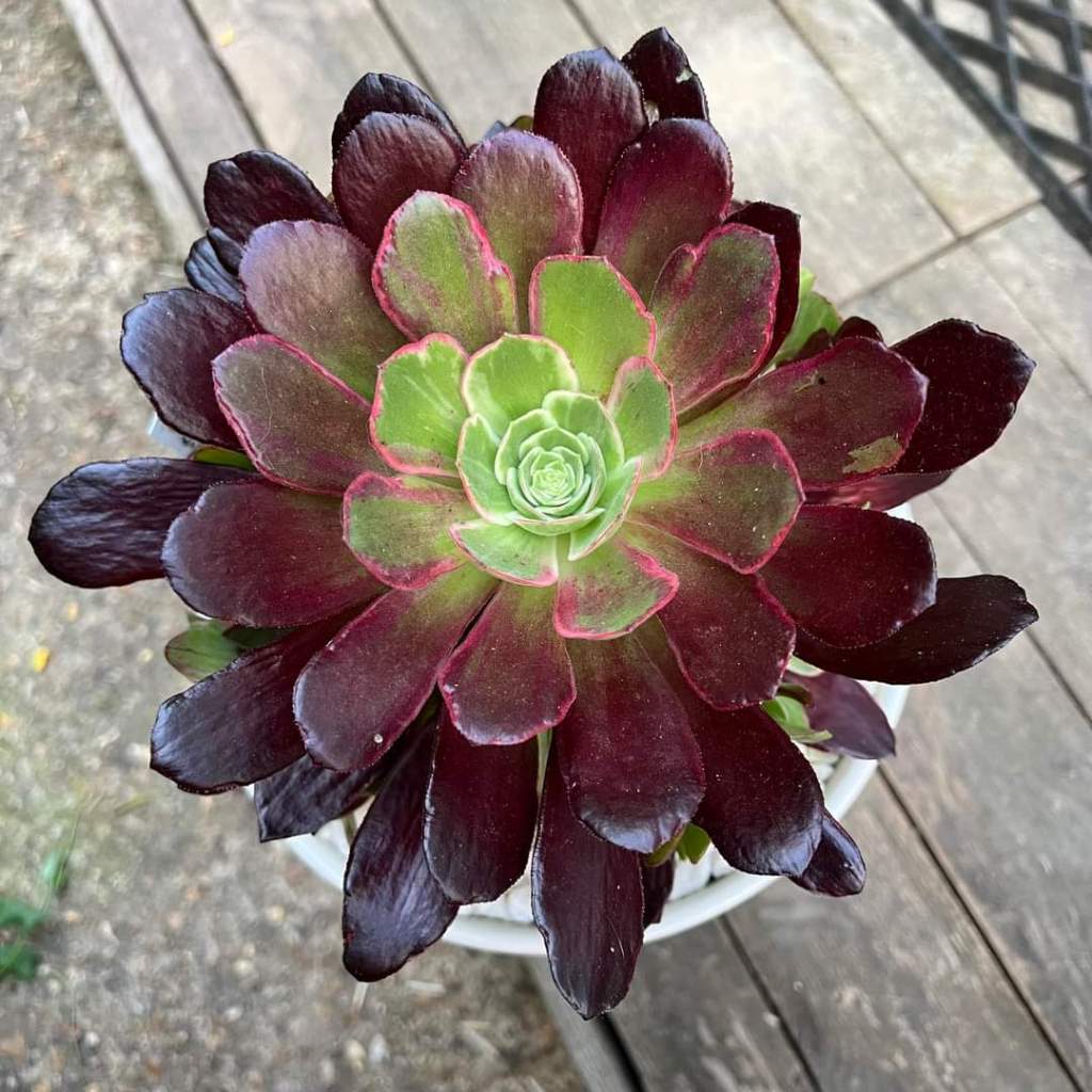 ORIGINE : Issu de la mutation de l’Aeonium Medusa qui est lui-même une mutation de l’Aeonium Velour.