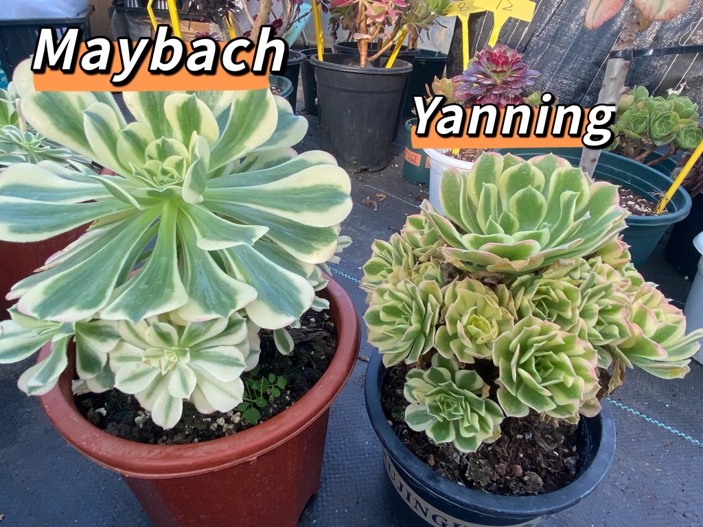 Note importante : Une des caractéristiques de ‘Maybach’ (comme de Yanning) par rapport à ‘Green Medusa’, ‘Gold Emerald’ et ‘Sinya’ est de ne jamais verdir même en hiver. Il garde sa variegation blanche/verte tout au long de l’année. Il circule parfois des Aeonium sous le nom de ‘Maybach’ qui verdissent, ce ne sont donc pas de véritables ‘Maybach’ mais certainement un des 3 autres cités précédemment et plus souvent ‘Sinya’ ou ‘Green Medusa’.