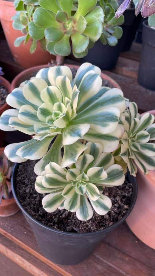 DESCRIPTION : L’Aeonium ‘Maybach’ est un Aeonium variegata issu de l’Aeonium ‘Green Cashmere’.