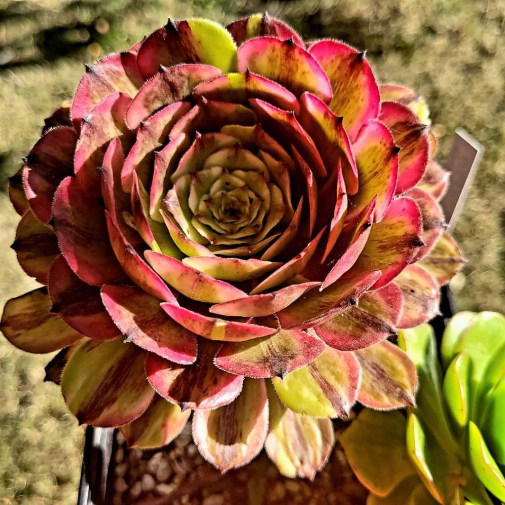 ORIGINE : Issu de la mutation de l’Aeonium ‘Pink Daisy‘ qui est lui même issu d’une mutation de l’Aeonium ‘Mardi Gras’.