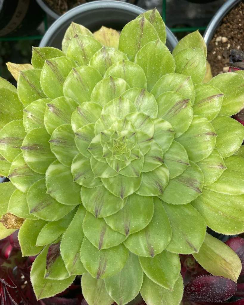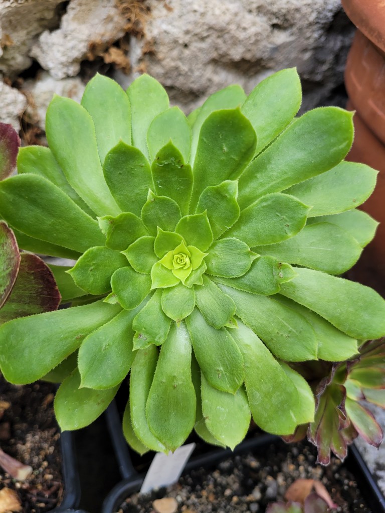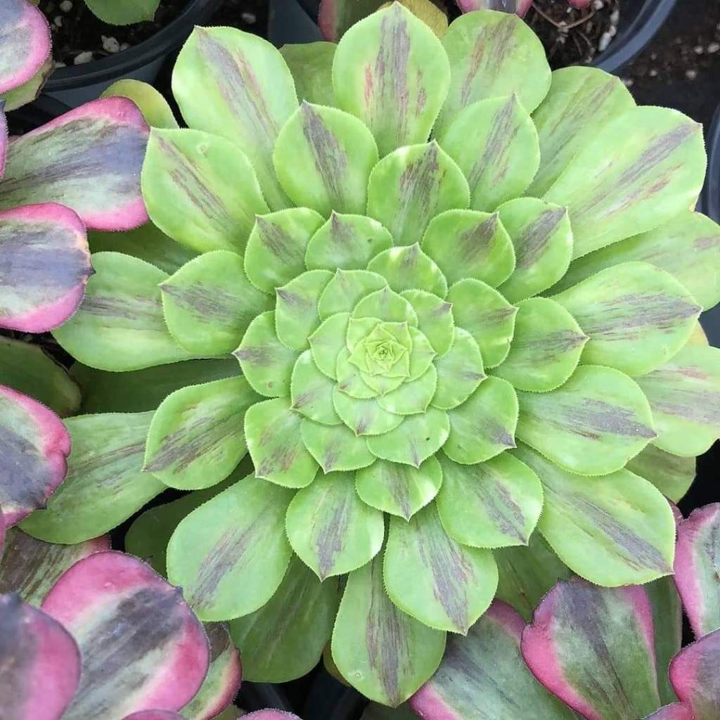 ORIGINE : Issu de la mutation de l’Aeonium ‘Pink Daisy‘ qui est lui même issu d’une mutation de l’Aeonium ‘Mardi Gras’.
