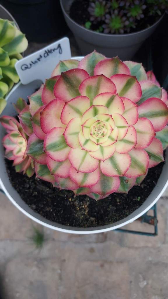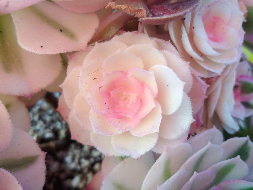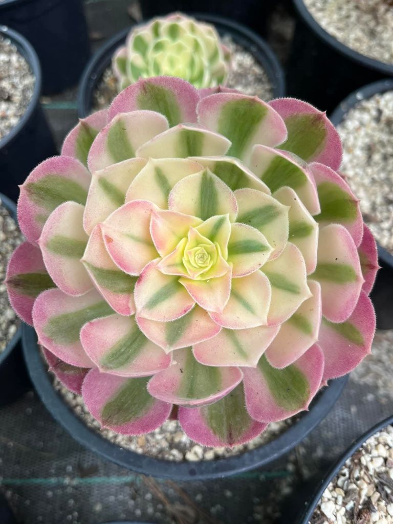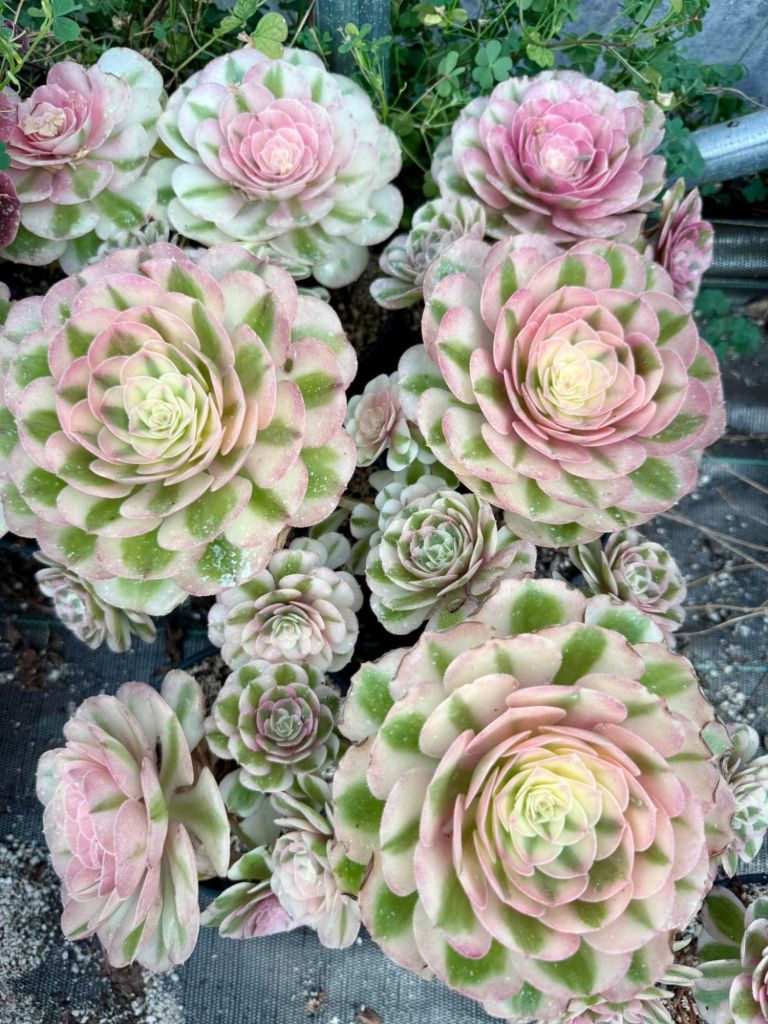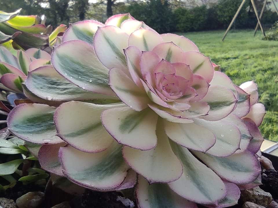 Remarque : Cet Aeonium a tendance à perdre une grande partie de ses parties vertes (chlorophylle) pour devenir quasi albinos. Ce qui engendre une pousse lente et une plus grande fragilité mais aussi un charme indéniable.