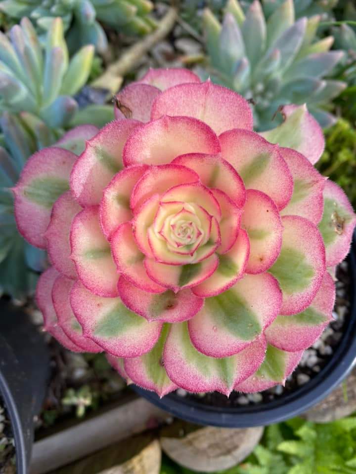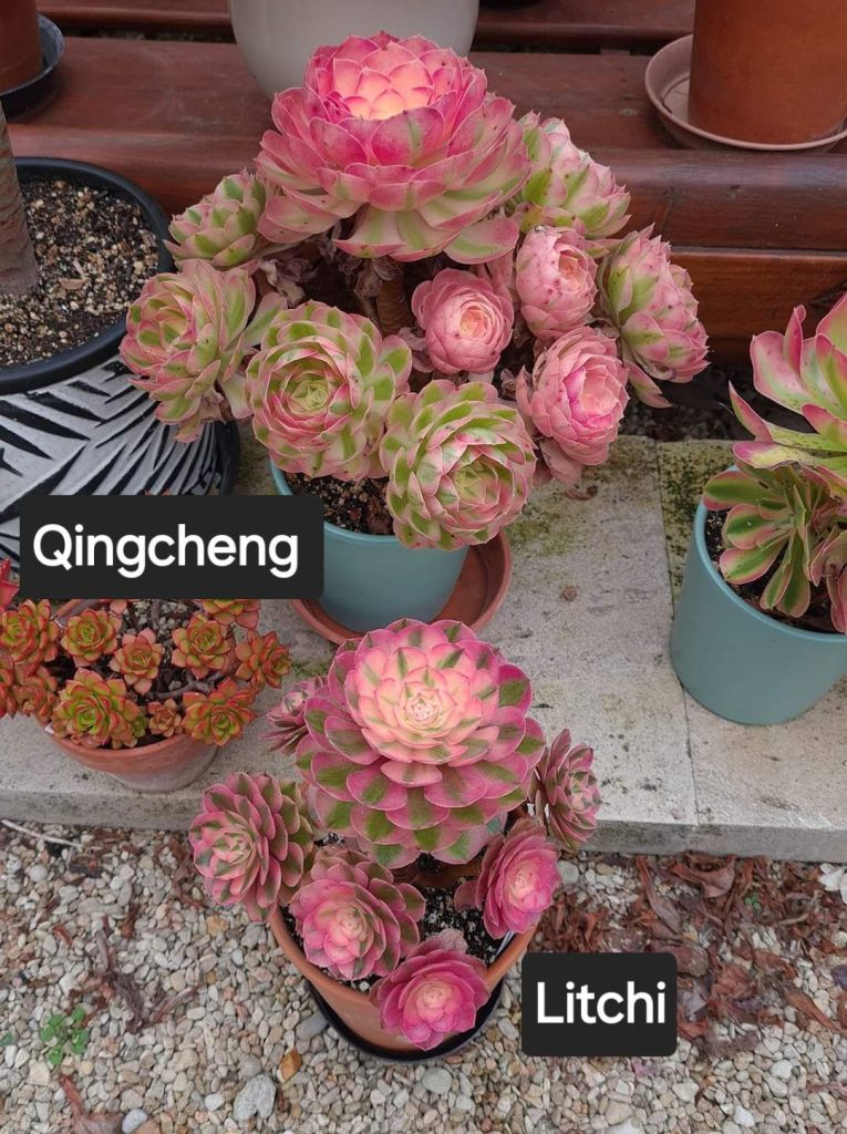 ORIGINE : Issu de la mutation de l’Aeonium ‘Madeira Rose’ (Halloween).