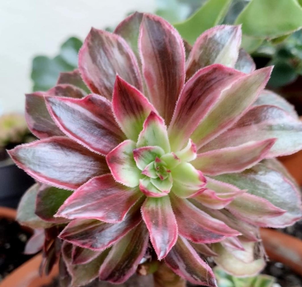 ORIGINE : Issu de la mutation de l’aeonium Madeira Rose (Halloween).