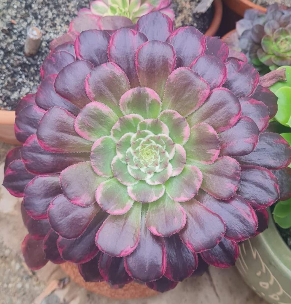 ORIGINE : Issu de la mutation de l’Aeonium Morticia qui est une réversion de l’aeonium Mardi Gras.