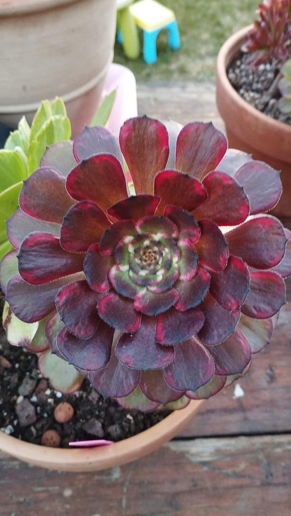 DESCRIPTION : L’Aeonium Dark Goddess est un Aeonium variegata issu de l’aeonium Morticia.