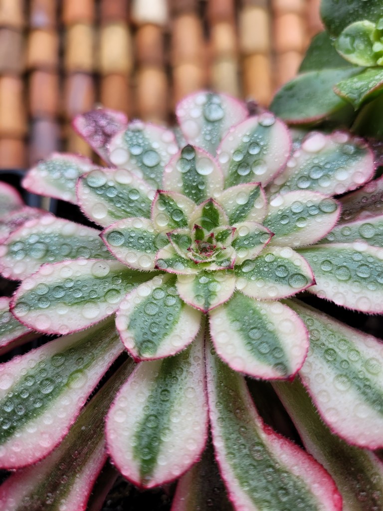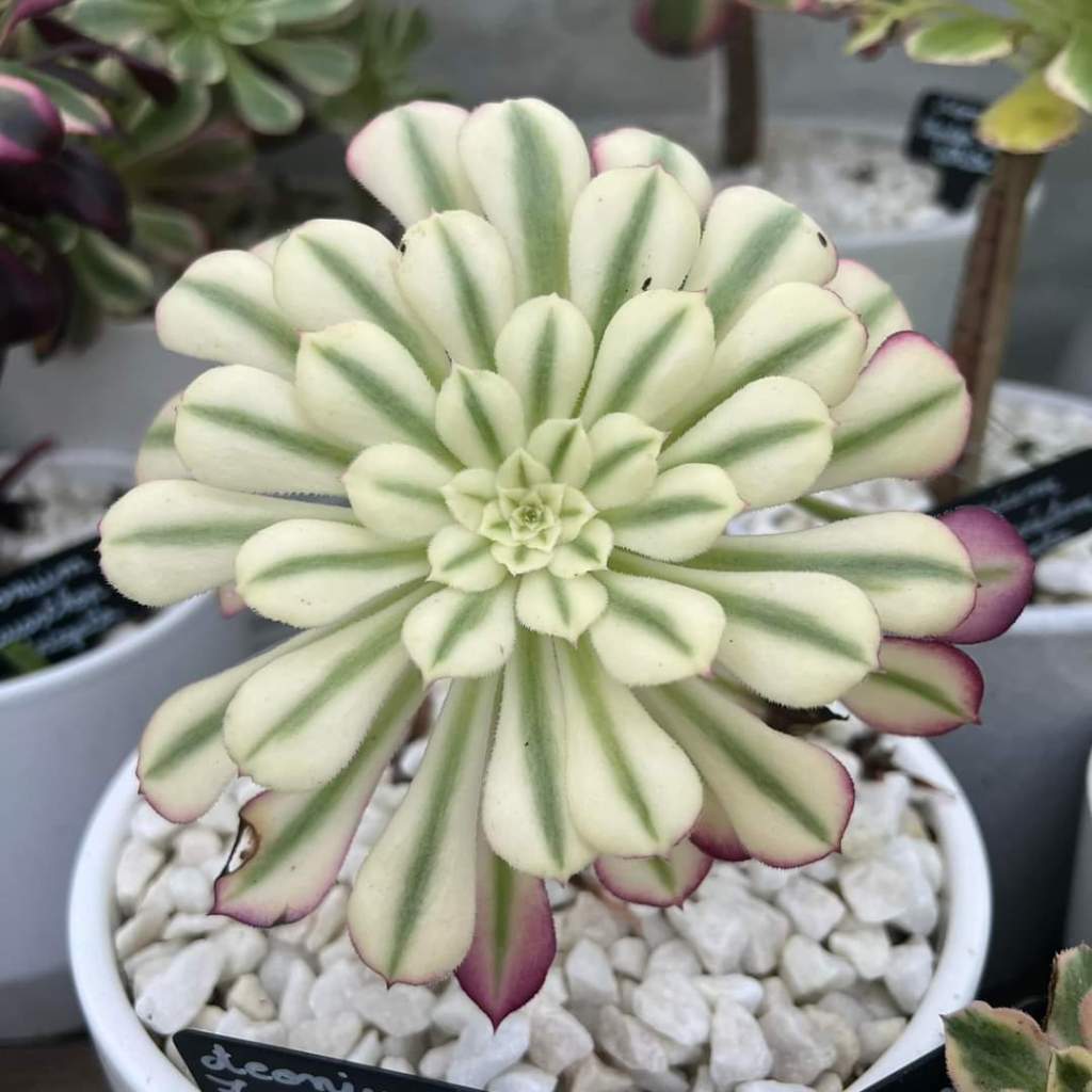 DESCRIPTION : L’Aeonium ‘Zwartkin White’ est un Aeonium variegata issu de l’Aeonium ‘Zwartkin‘.