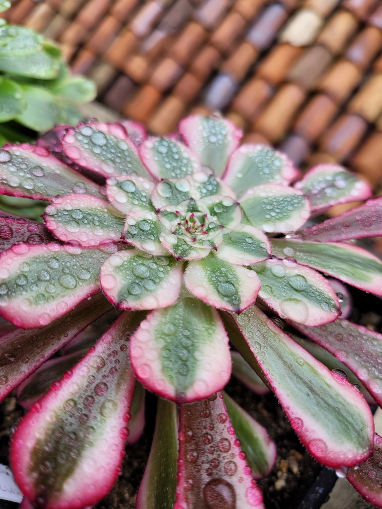 Cet Aeonium variegata a une pousse plutÎt rapide et rejette correctement. Pas de fragilité reconnu à ce stade.