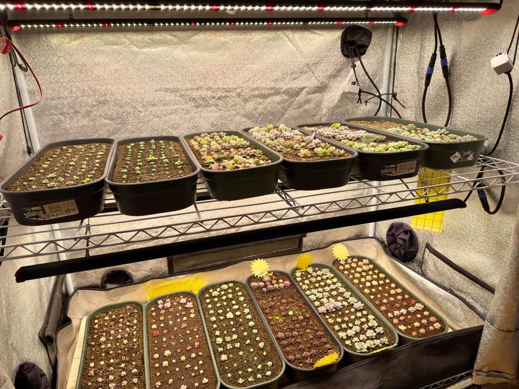 Pour les succulentes de plein soleil on essaye de se situer à environ 150-300 micromoles/m2/s x 12h par jour.