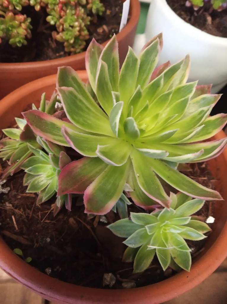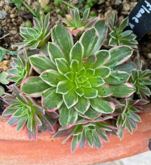 Cet Aeonium variegata a une pousse plutôt lente mais il a tendance à rejetter facilement.