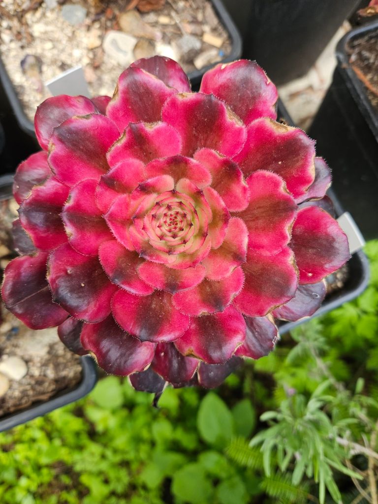 ORIGINE : Issu de la mutation de l’Aeonium ‘Mardi Gras’.