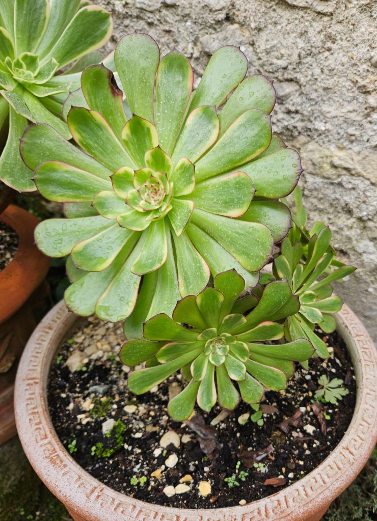 Cet Aeonium variegata a une pousse plutôt rapide et il a tendance à rejeter moyennement. Pas de fragilité particulière reconnue à ce stade.