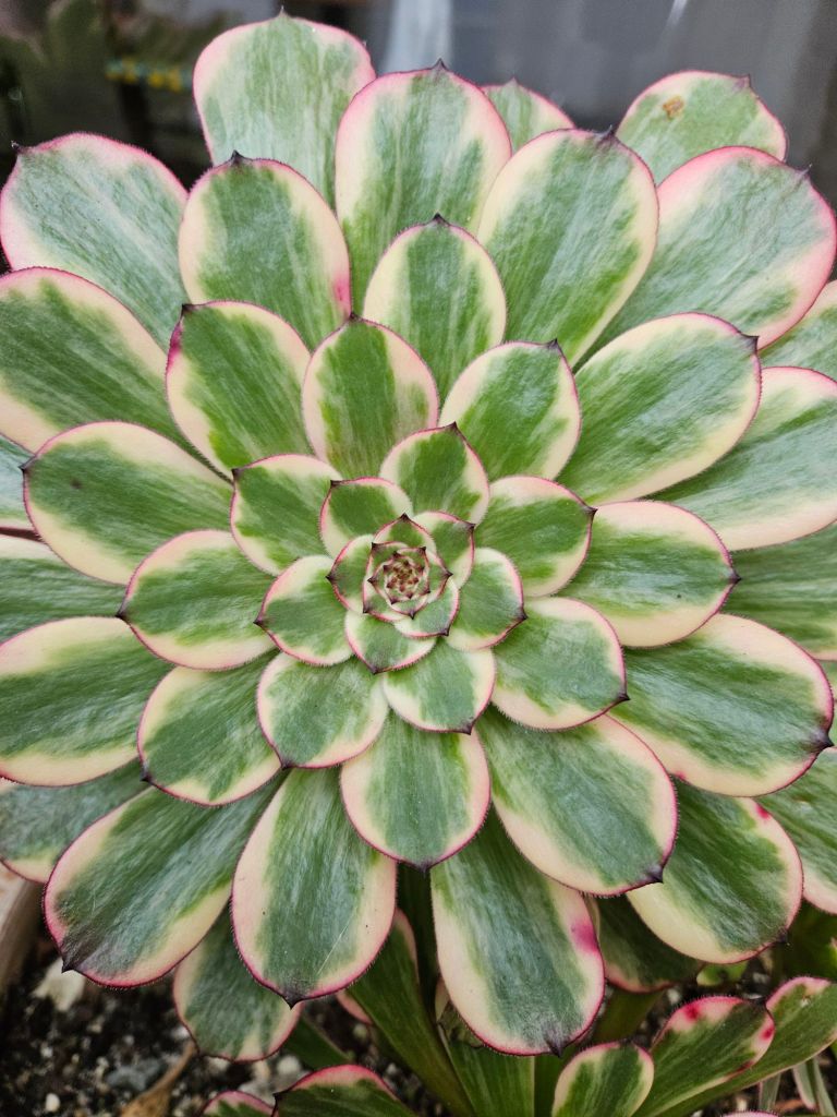 DESCRIPTION : L’Aeonium ‘Watermelon Taro’ est un Aeonium variegata issu de l’Aeonium ‘Mardi Gras’.