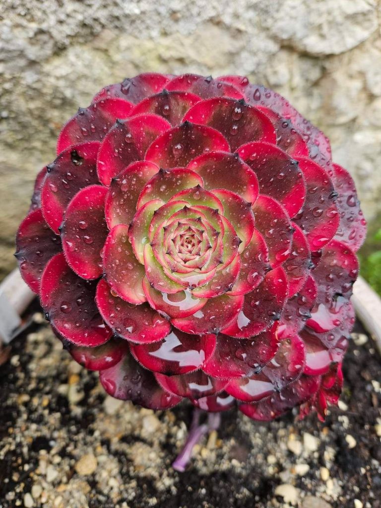 ORIGINE : Issu de la mutation de l’Aeonium ‘Mardi Gras’.