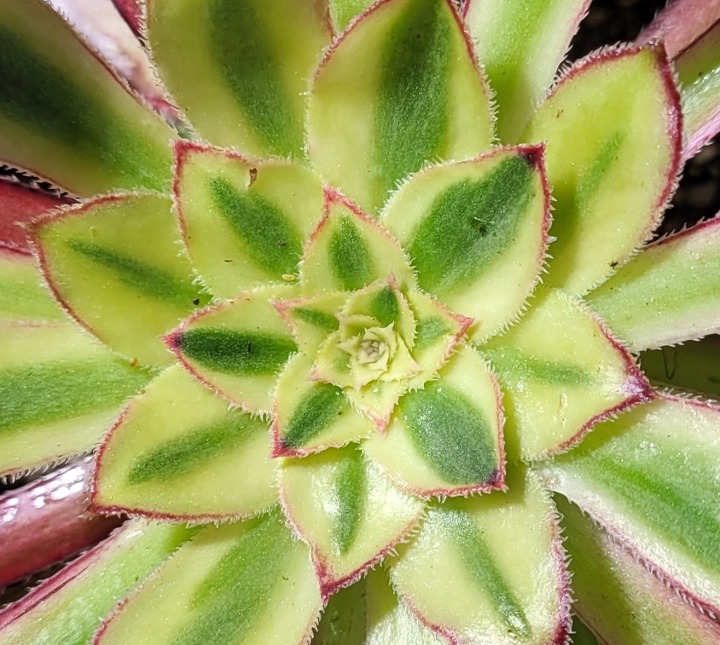 DESCRIPTION : L’Aeonium ‘Rainbow’ est un Aeonium variegata issu probablement de l’Aeonium ‘Plum Purdy’.