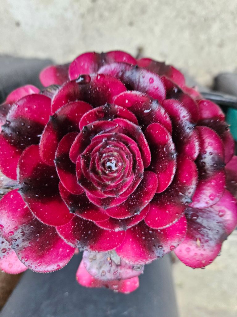 ORIGINE : Issu de la mutation de l’Aeonium Hongyan qui est lui même issu d’une mutation de l’Aeonium ‘Mardi Gras’.