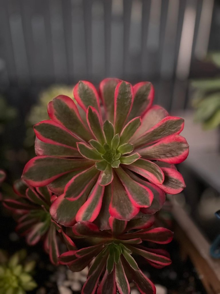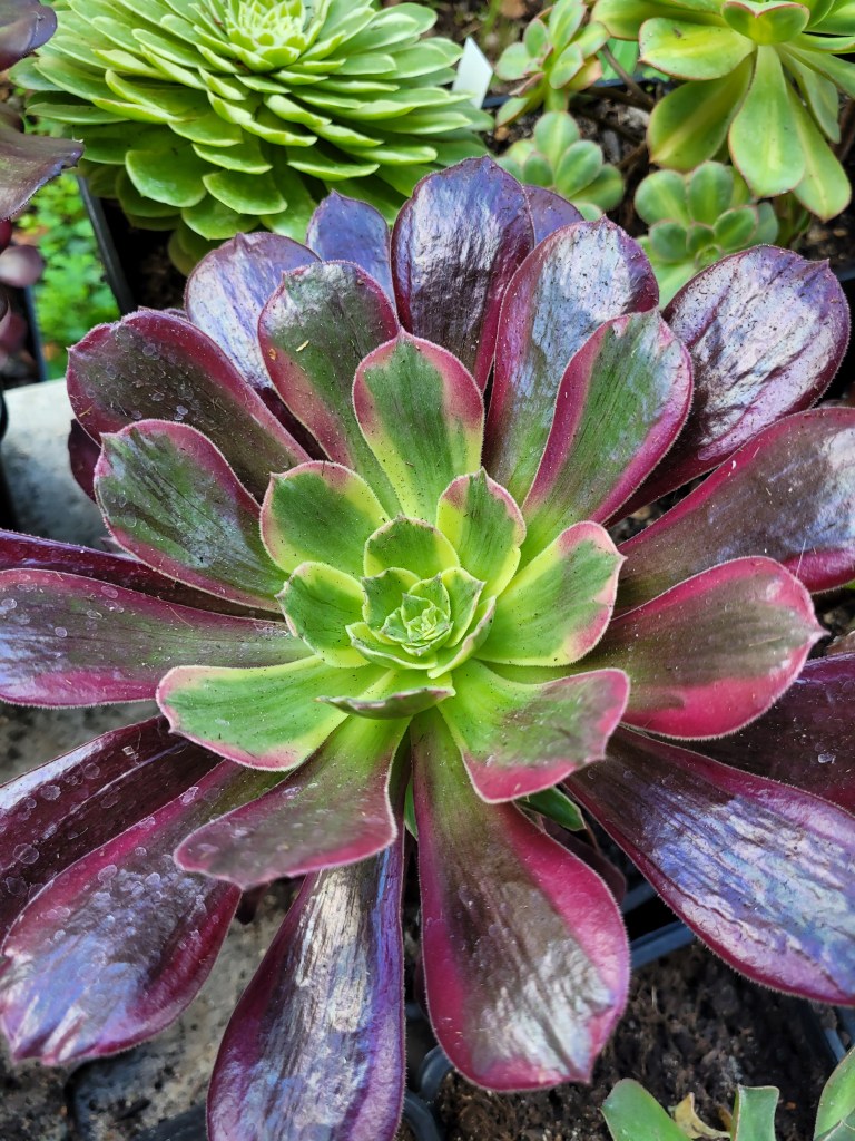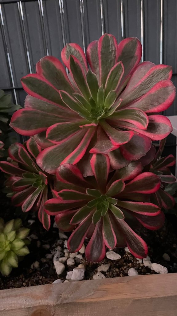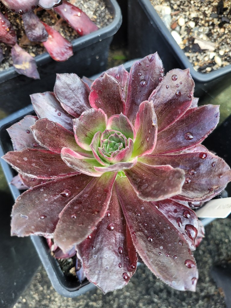 ORIGINE : Issu de la mutation de l’aeonium ‘Eden‘ qui est lui-même une mutation de l’aeonium ‘Velour‘. Il est néanmoins très proche d’Eden. Il est fort possible que ce soit le même Aeonium et non une mutation différente.