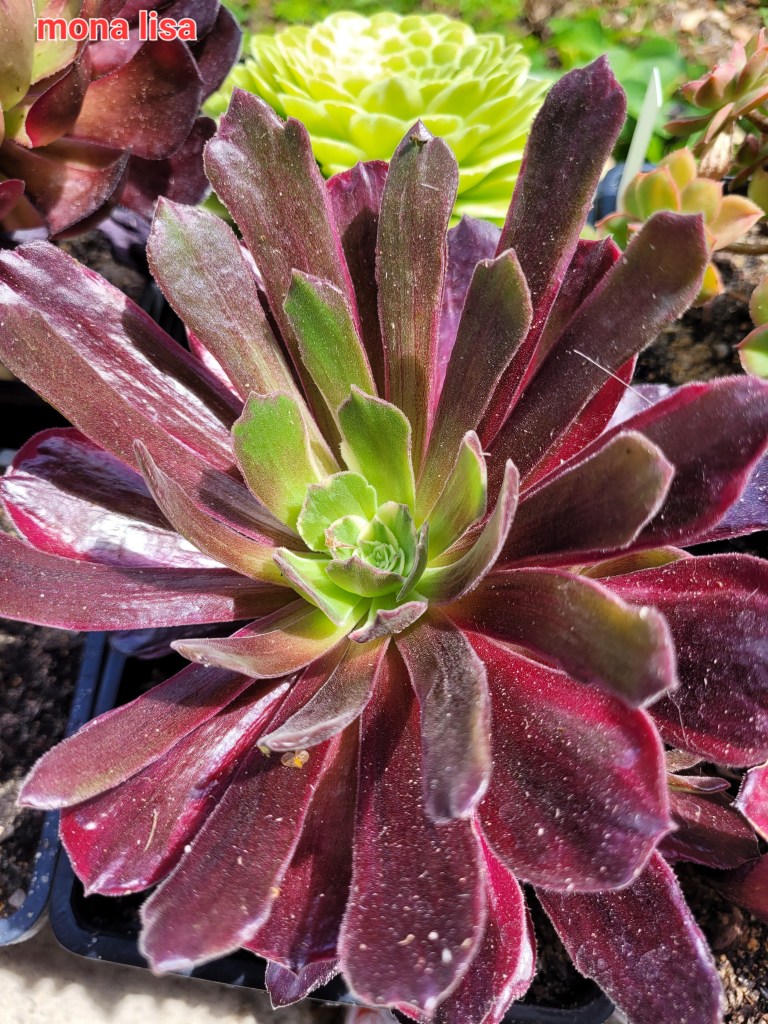 DESCRIPTION: L’aeonium ‘Mona Lisa’ est un aeonium arbustif variegata issu de la mutation de l’aeonium ‘Eden‘.