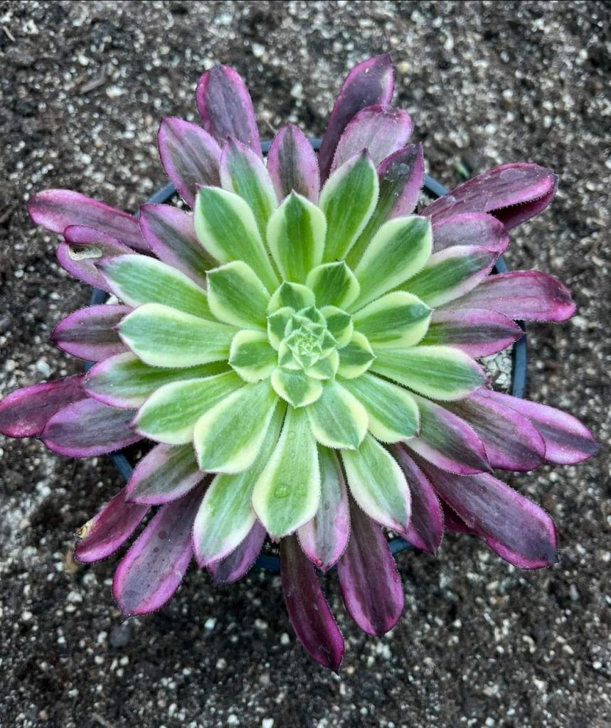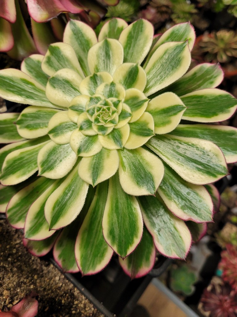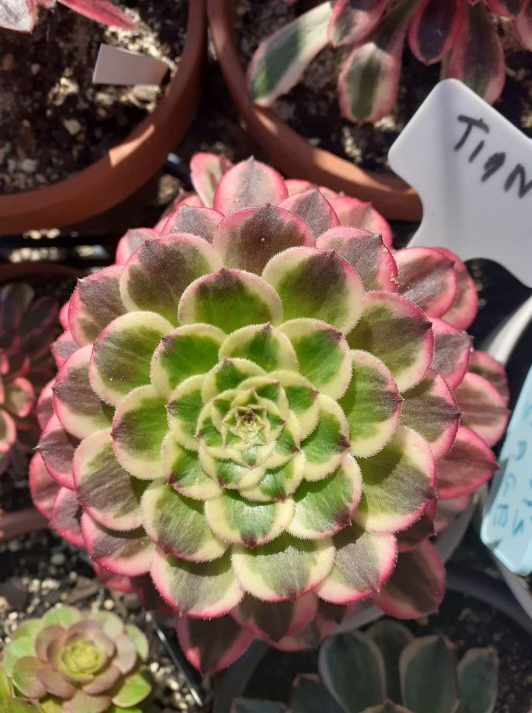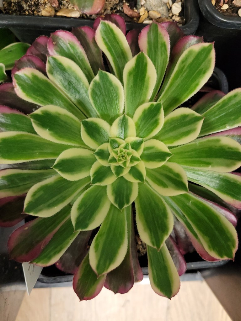 DESCRIPTION : L’Aeonium ‘Tianhe’ est un Aeonium variegata issu de la mutation d’un Aeonium encore non déterminé aujourd’hui.