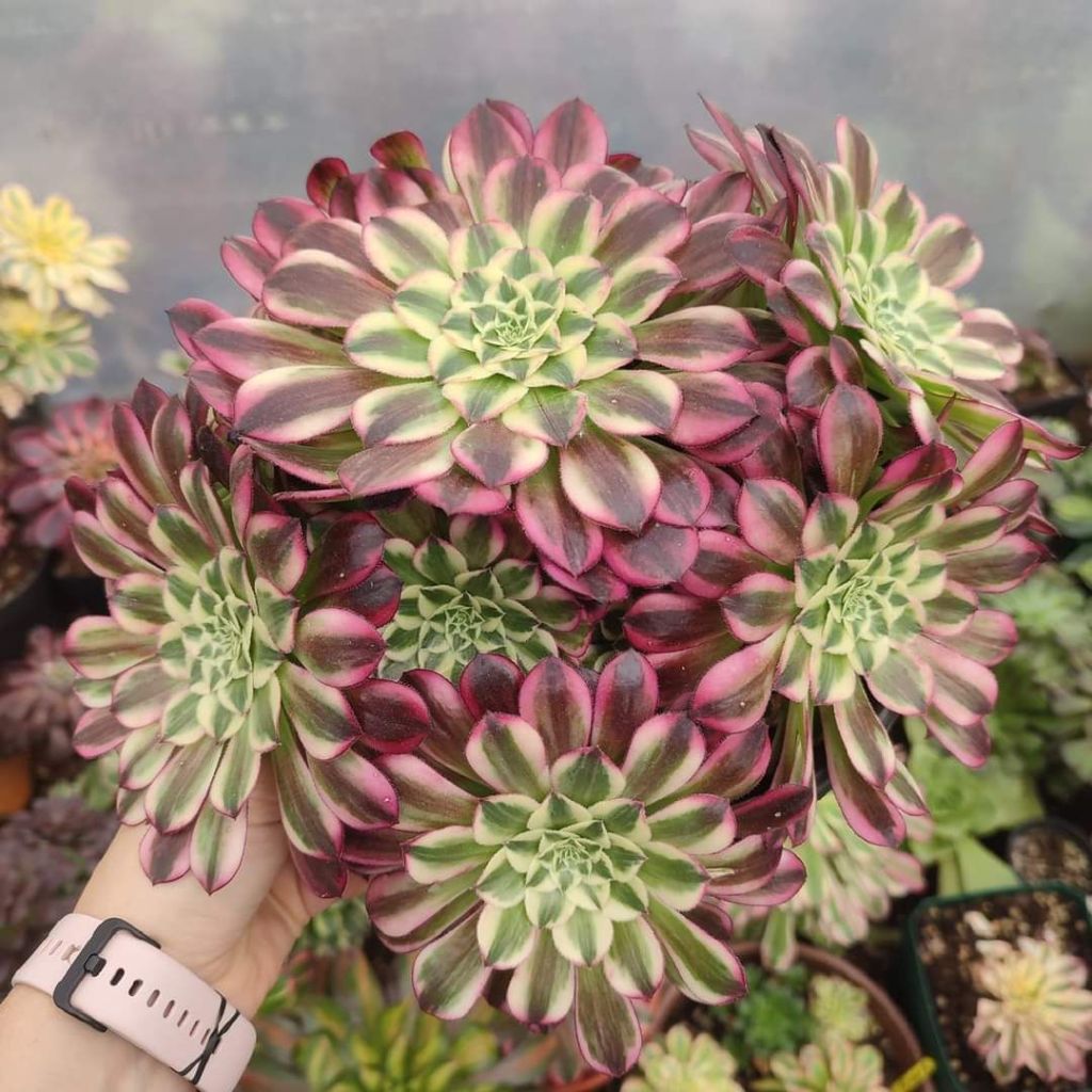ORIGINE : Il est dit qu’il est issu de la mutation de l’Aeonium ‘Garnet’ mais comme pour les autres ‘Garnet’ variegata cela ne semble pas être le cas (voir catégorie ‘Garnet’ pour en savoir plus). Sa réelle origine est donc encore inconnue.