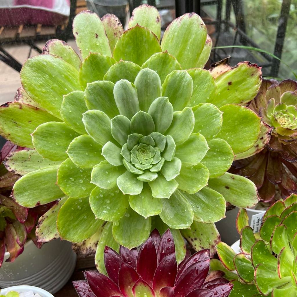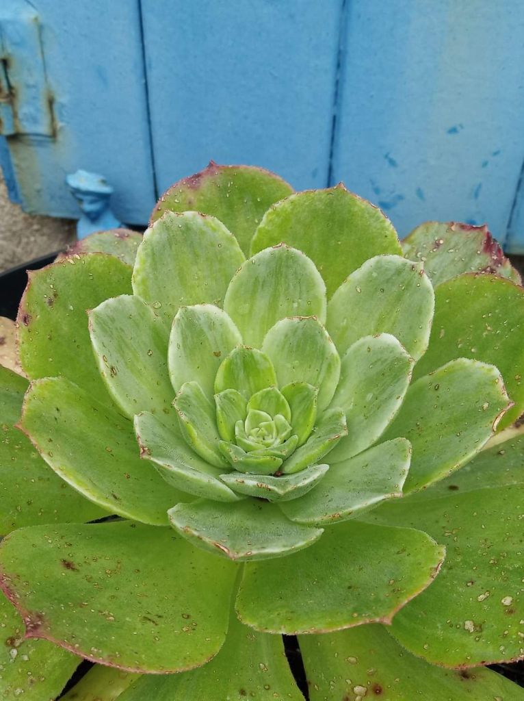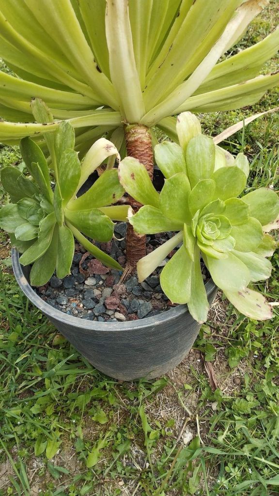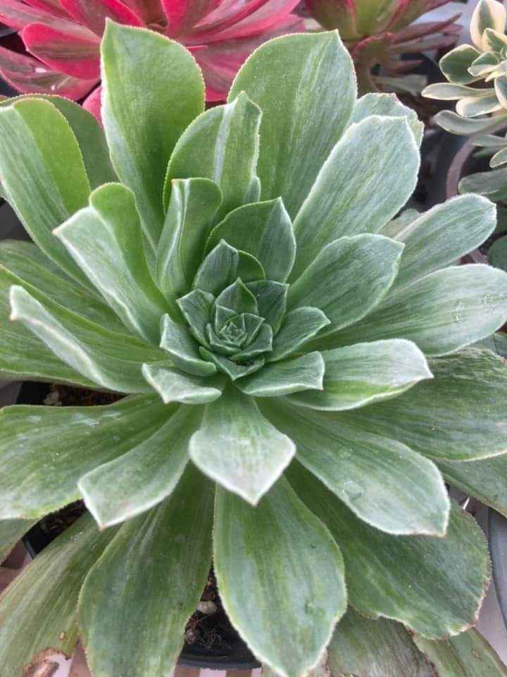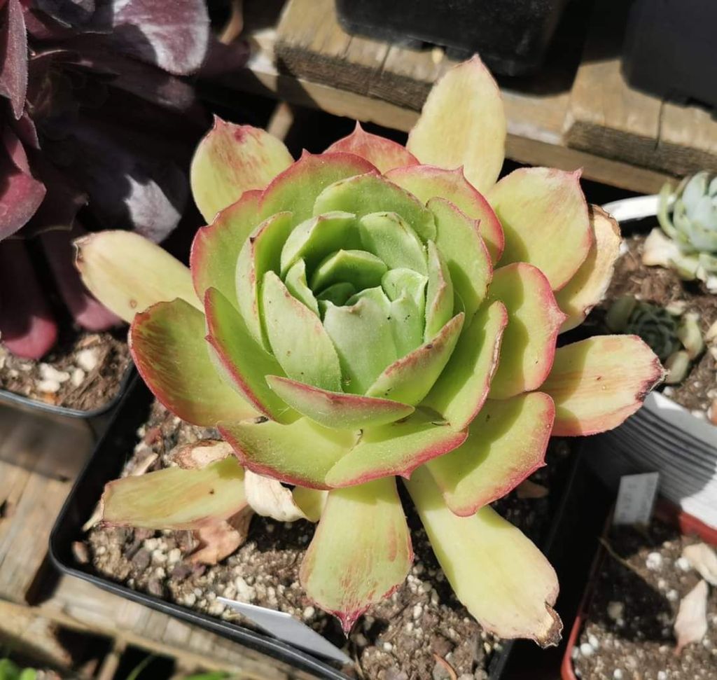 Cet Aeonium variegata a une pousse moyenne et il est assez prolifique. Il n’est pas particulièrement fragile et résiste assez bien à l’humidité. Il est aussi particulièrement stable pour un variegata.
