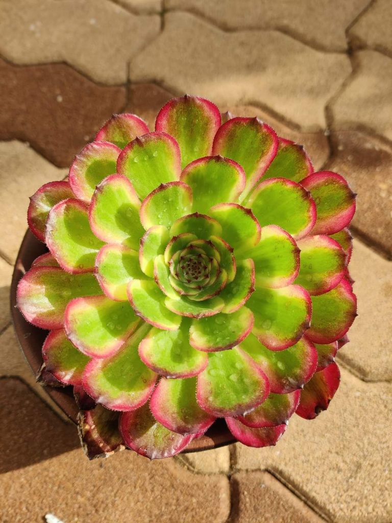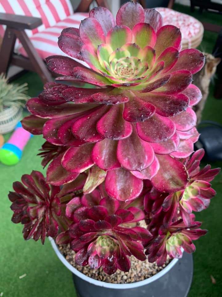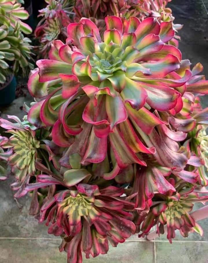 En pleine période estivale sous de forte chaleur et un apport d’eau maitrisé, son feuillage va avoir tendance à former des vagues de façon très prononcé ce qui en fait sa marque caractéristique. Cet effet « vague » est encore plus prononcé que chez l’Aeonium Venus et c’est cette caractéristique qui en fait soi-disant sa différence.