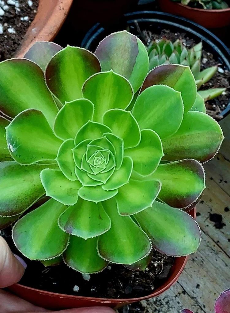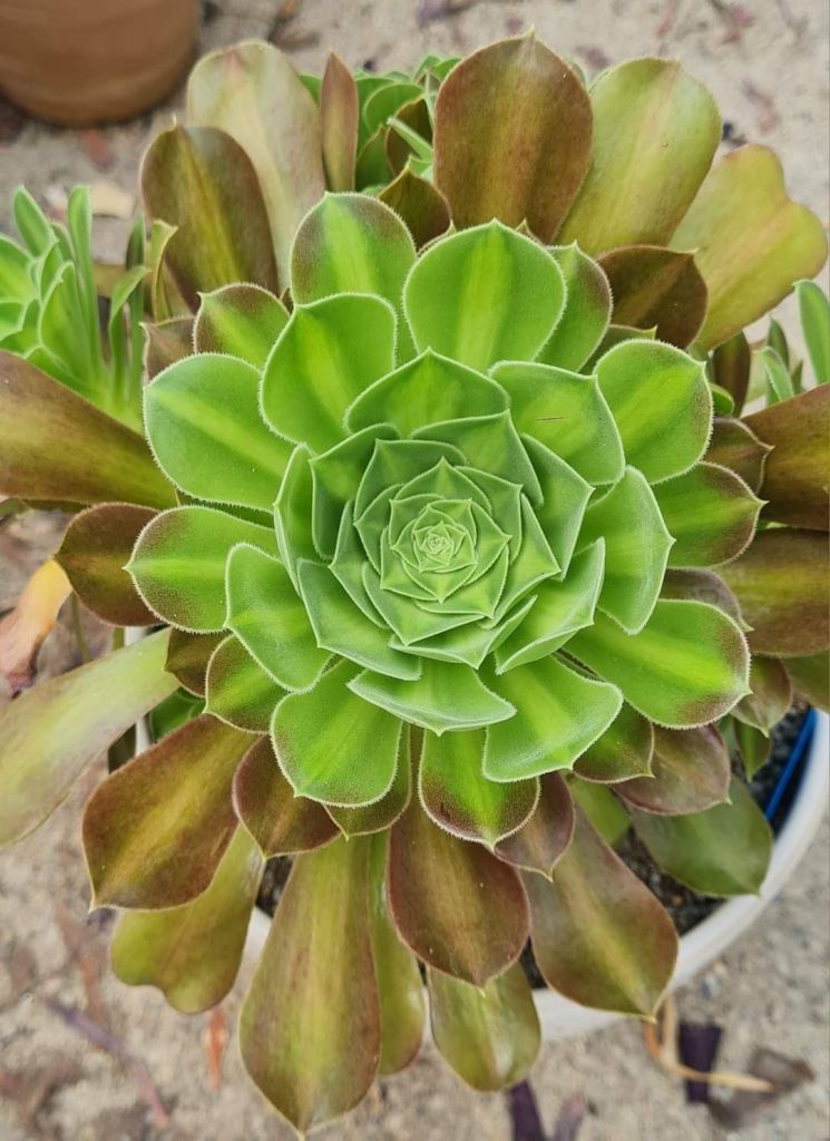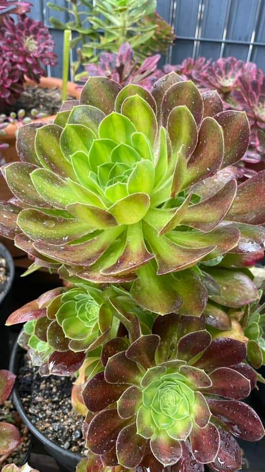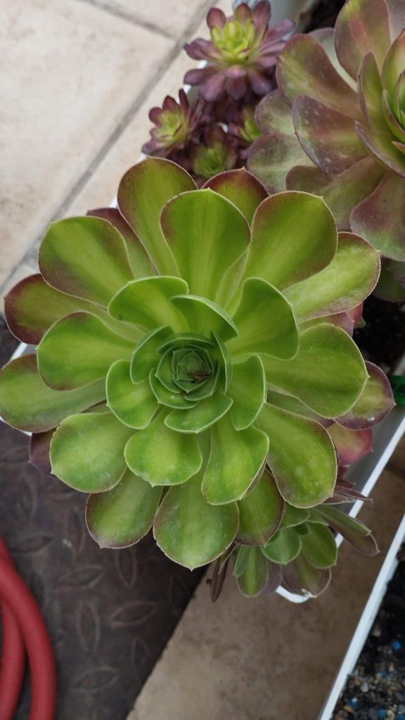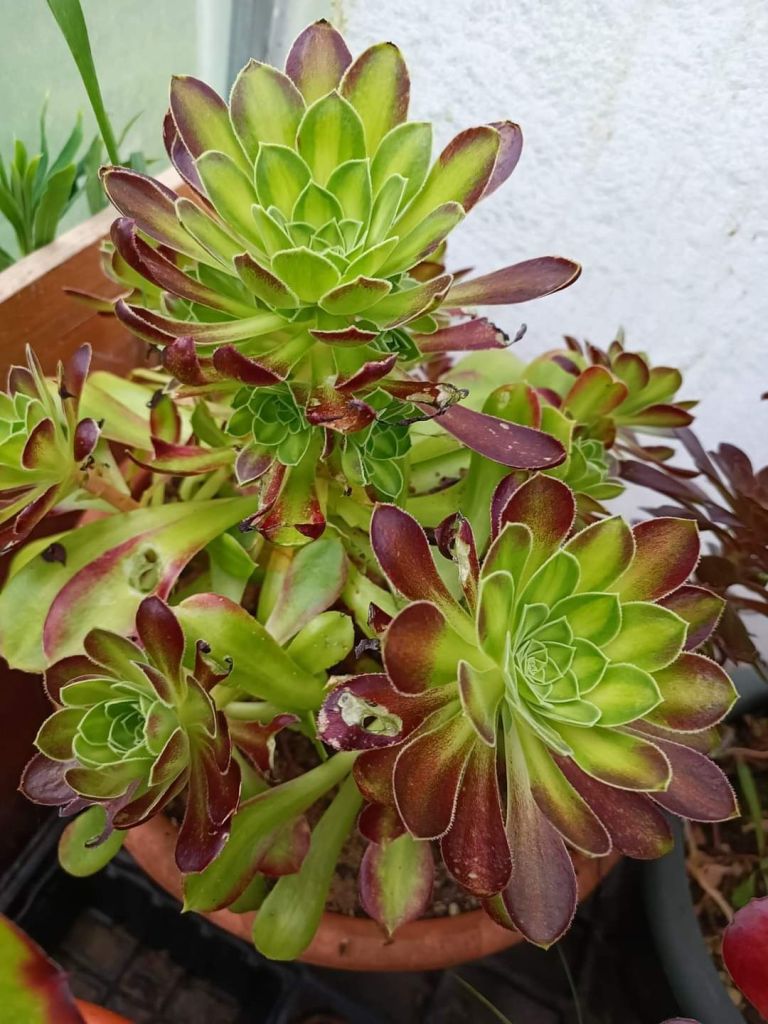 Cet Aeonium variegata a une pousse active et rejette correctement. Il ne semble pas particulièrement fragile.
