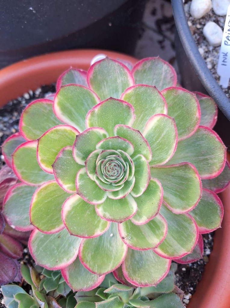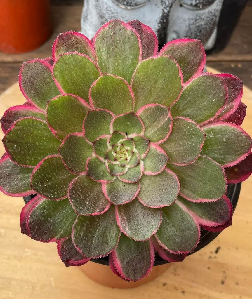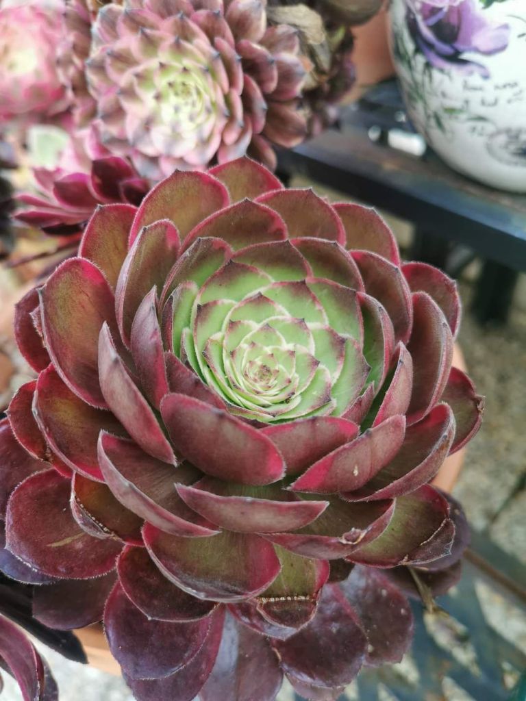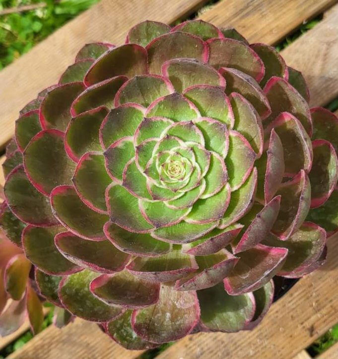 ORIGINE : Issu probablement de la mutation de Love in the Fallen City (Qingcheng) qui est lui-même issu de la mutation de l’Aeonium ‘Madeira Rose’ aka ‘Halloween’.