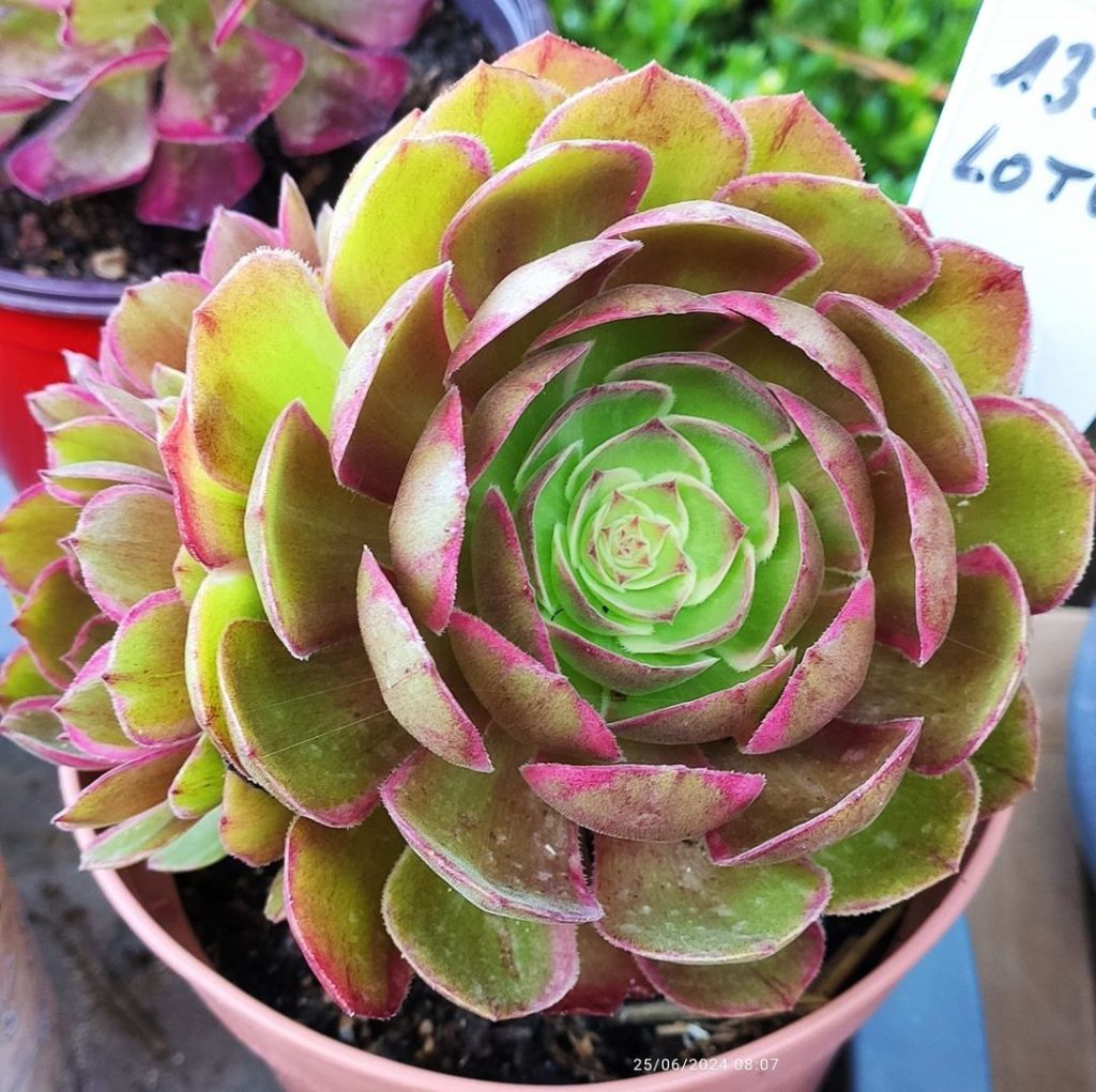 DESCRIPTION : L’Aeonium ‘Lotus Seat’ est un Aeonium variegata issu de l’Aeonium ‘Madeira Rose’ aka ‘Halloween’.