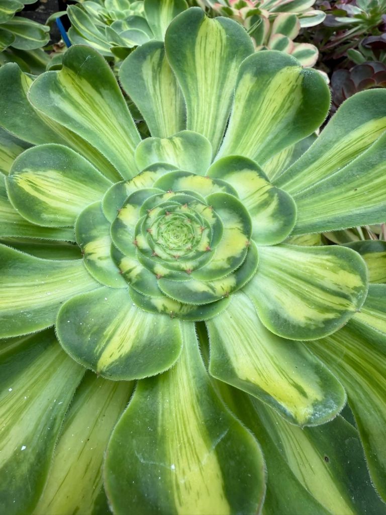 ORIGINE : Mutation de l’Aeonium ‘Poseidon’ qui est lui même issu de la mutation de l’Aeonium undulatum.
