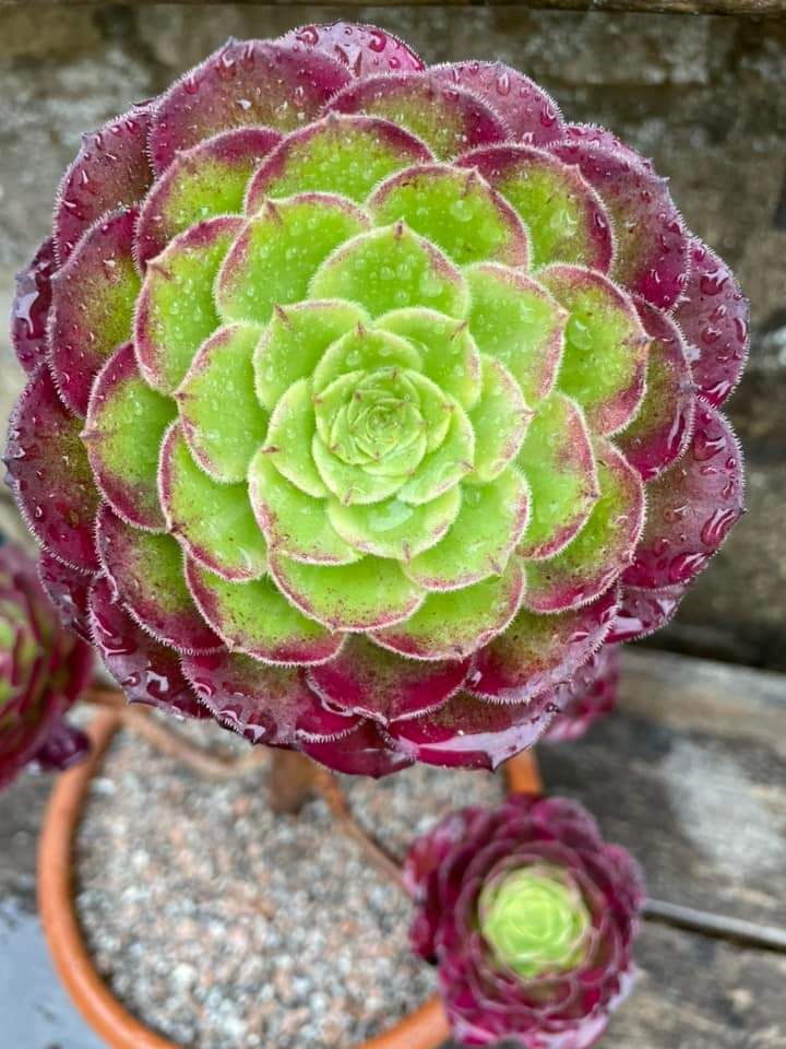 ORIGINE : Issu de la mutation de l’Aeonium ‘Mardi Gras’.