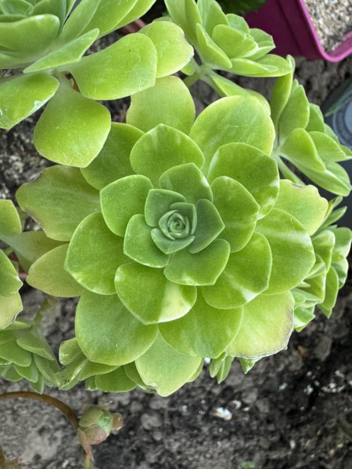 ORIGINE : Issu d’après son créateur de l’hybridation d’un Aeonium ‘Suncup’ et d’un Aeonium goochiae. Aeonium très rare et difficile à trouver.