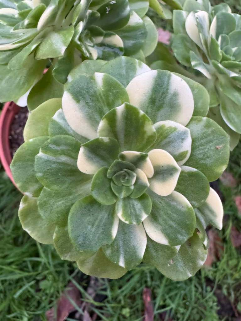 DESCRIPTION : L’Aeonium ‘Chou’ est un Aeonium variegata issu de l’hybridation d’un Aeonium ‘Suncup’ et de l’Aeonium ‘Goochiae’.