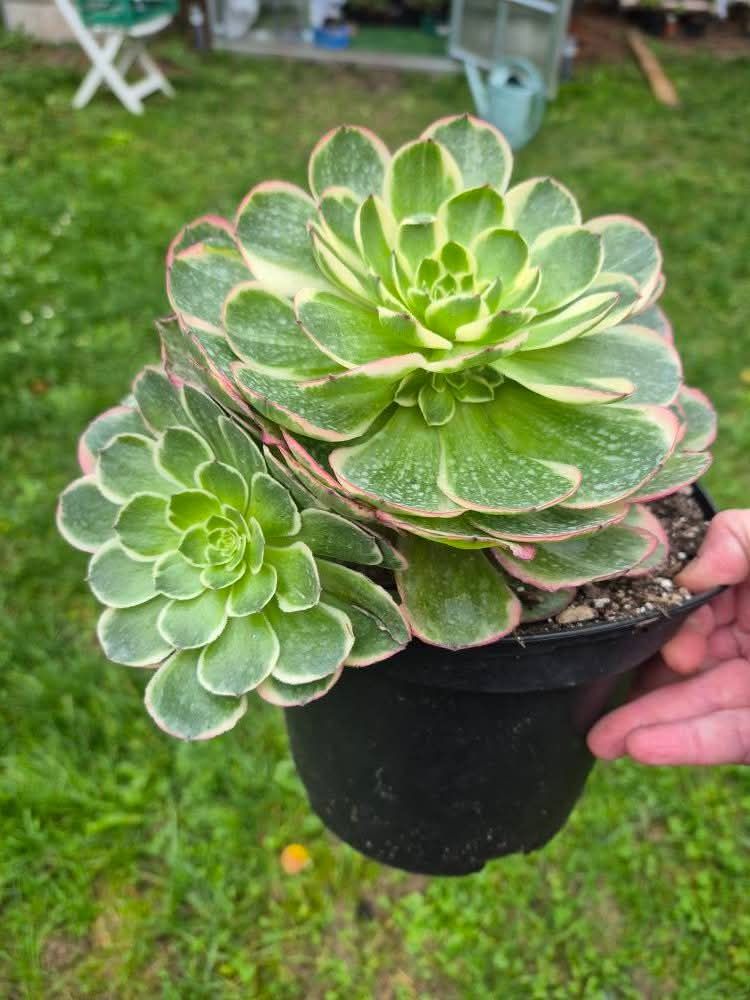 Cet Aeonium variegata a une pousse plutôt rapide et rejette normalement. Pas de fragilité particulière relevée à ce stade mais cet Aeonium étant encore assez récent de culture nous n’avons pas encore beaucoup de retour.