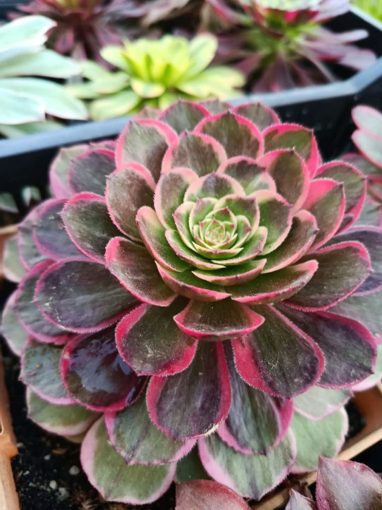 ORIGINE : Issu de la mutation del’Aeonium ‘Madeira Rose’ aka ‘Halloween’.